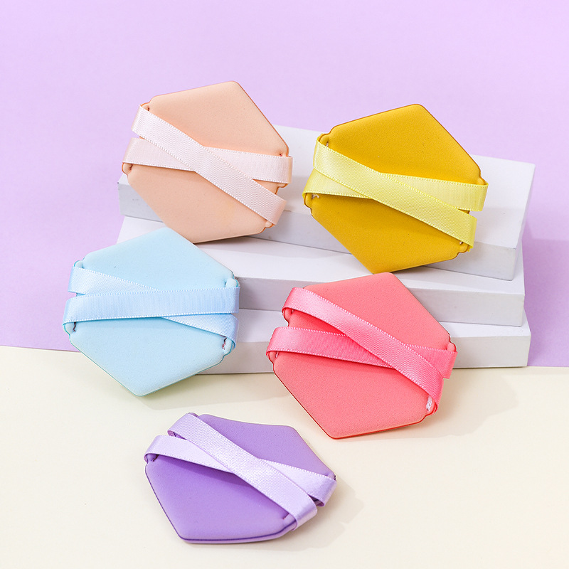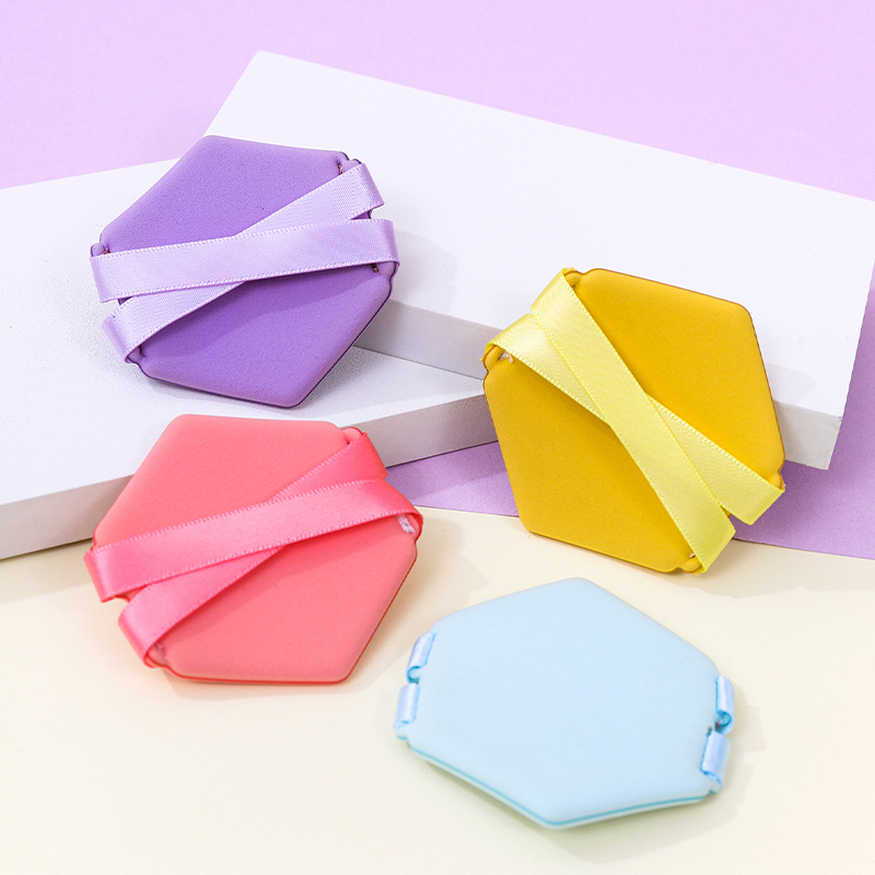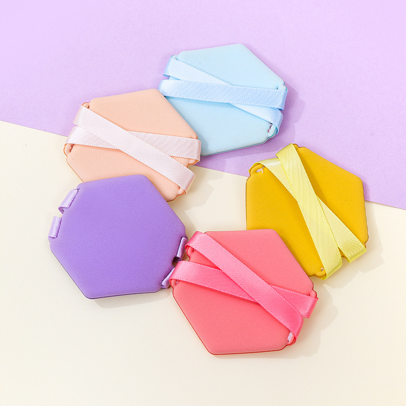 La borla de polvo de doble cinta personalizada de fábrica no come polvo, se agranda en el agua, cojín de esponja de maquillaje sin látex de diamante hexagonal
