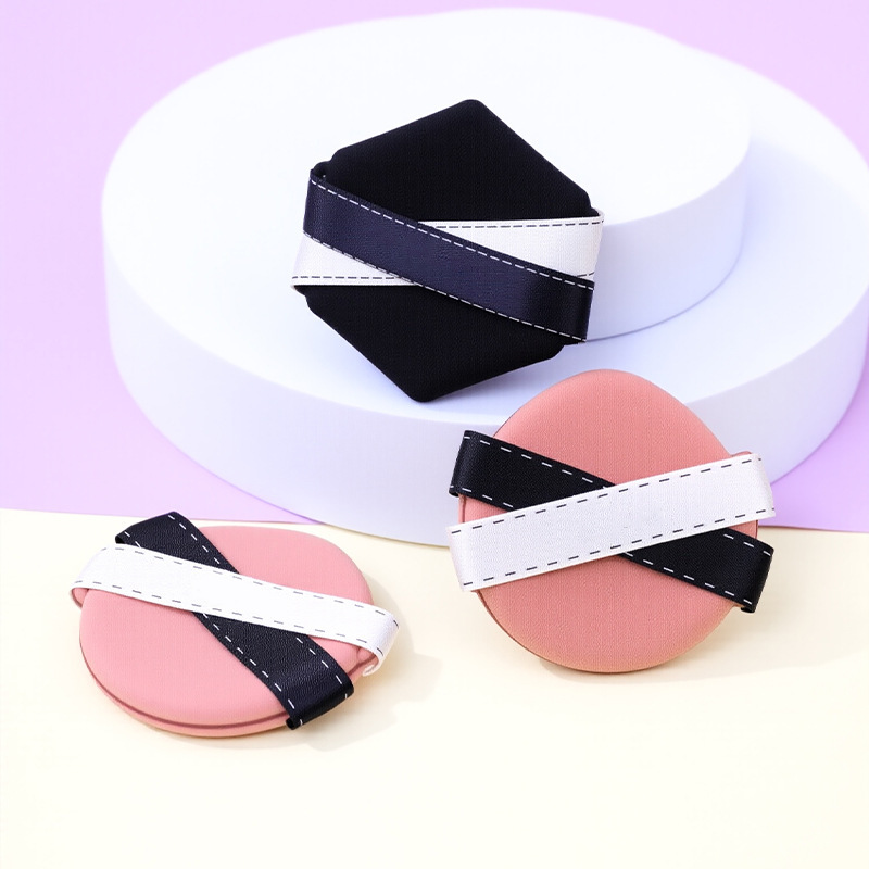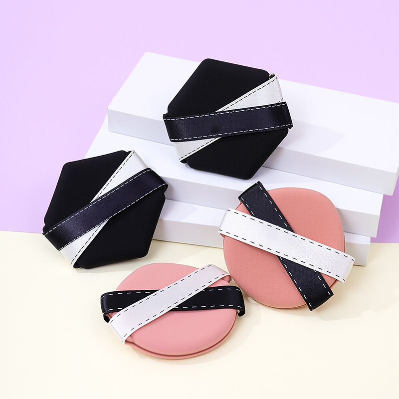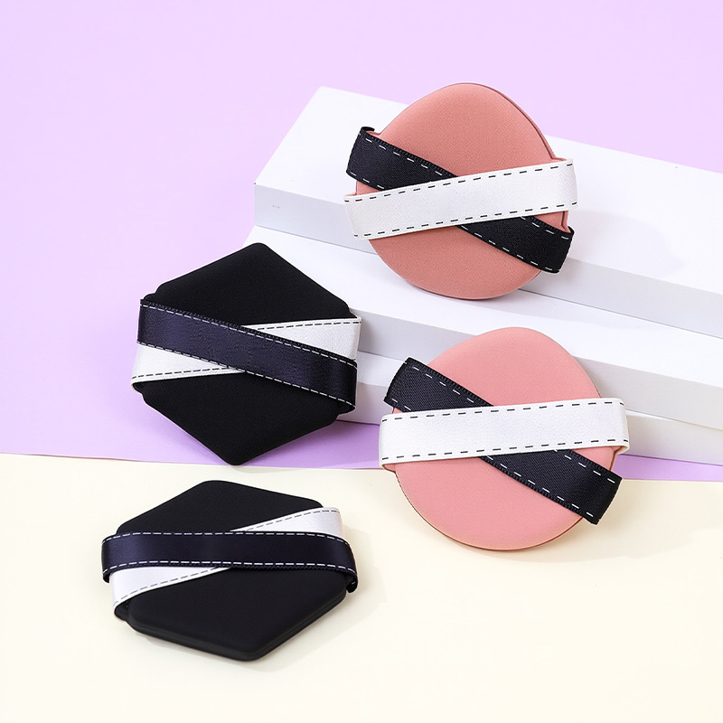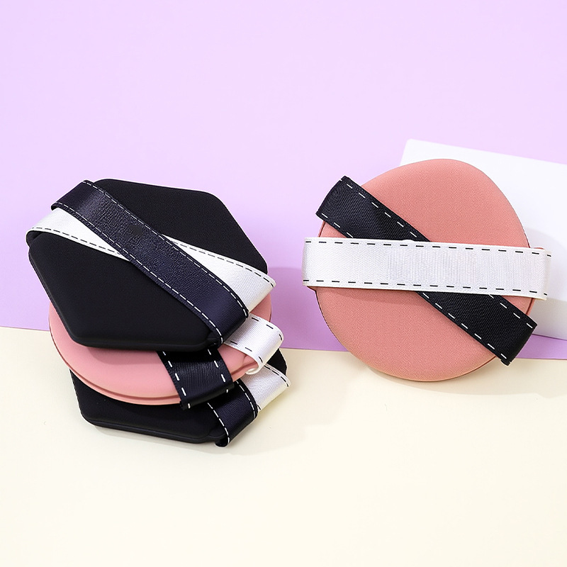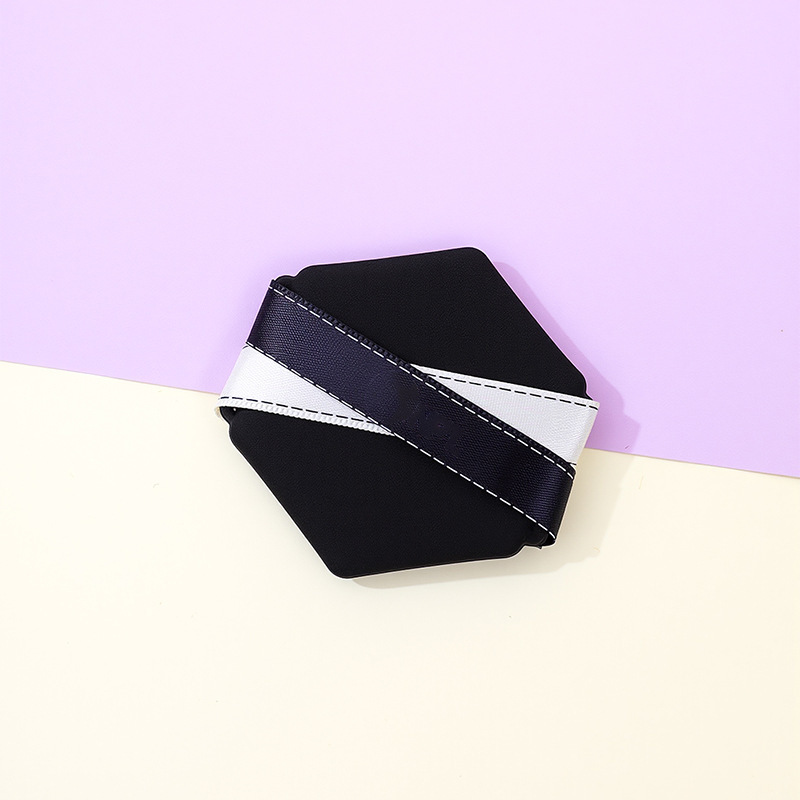 La borla de polvo de cinta de dos colores personalizada de fábrica no come polvo, gotas de agua sin látex, esponja de maquillaje de seis lados en forma de diamante, cojín de aire al por mayor