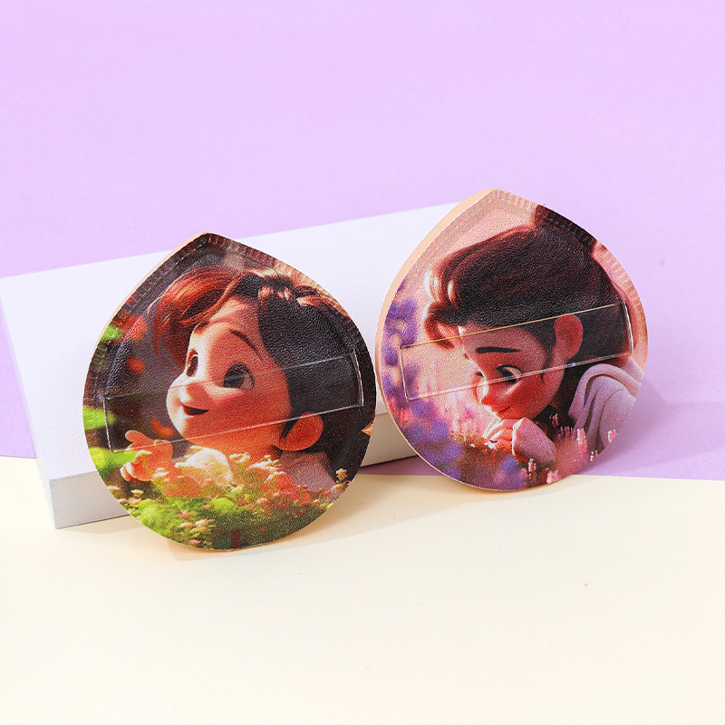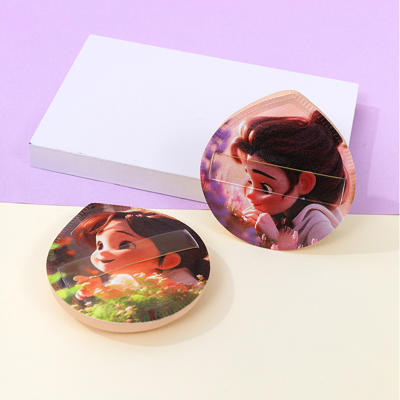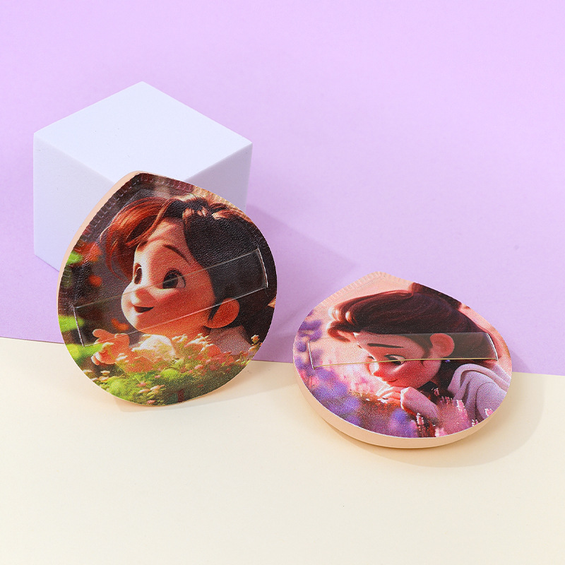 Puff de algodón de azúcar personalizado de fábrica gran impresión de personajes de dibujos animados poliuretano maquillaje esponja cojín de aire seco y húmedo