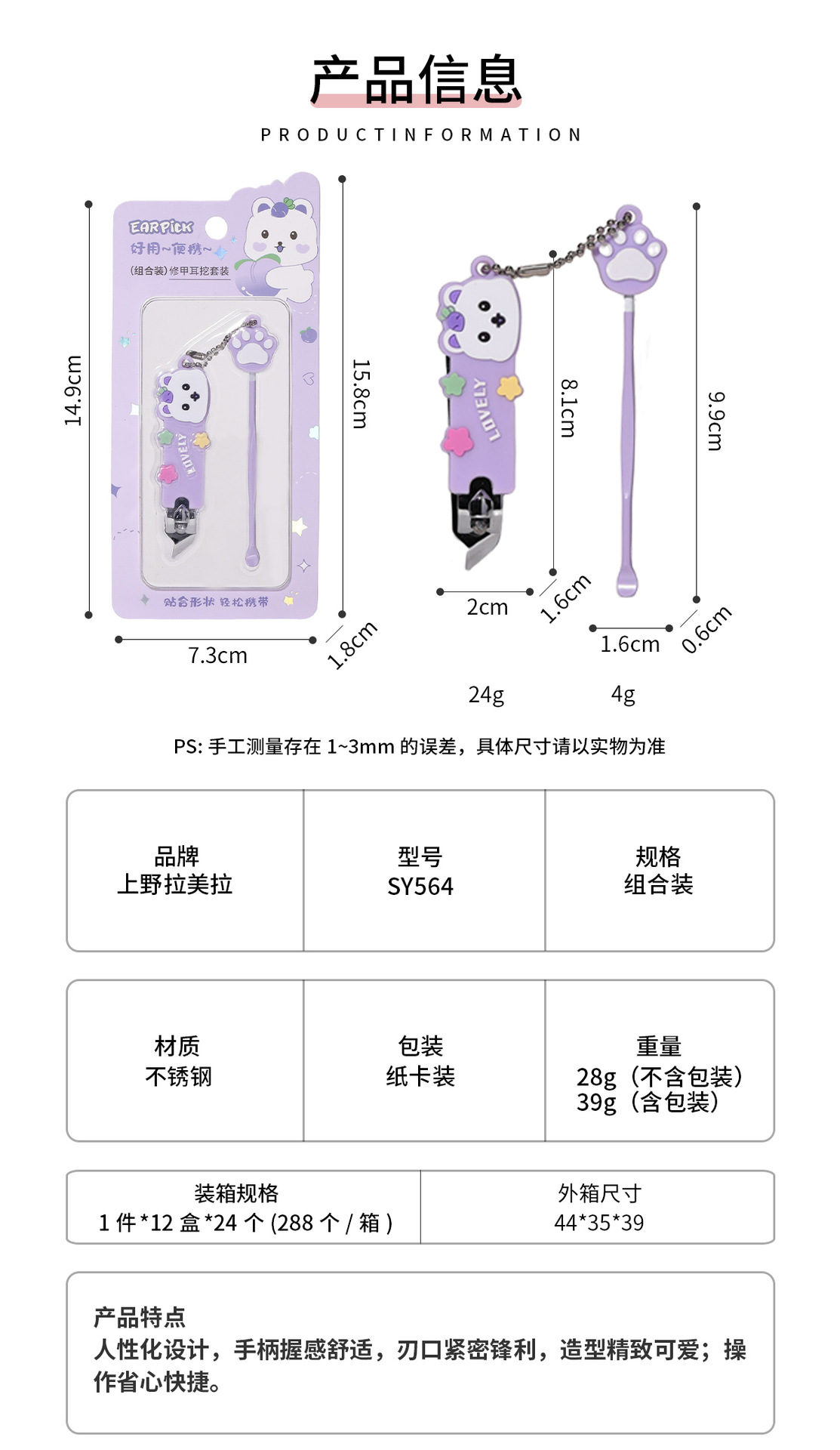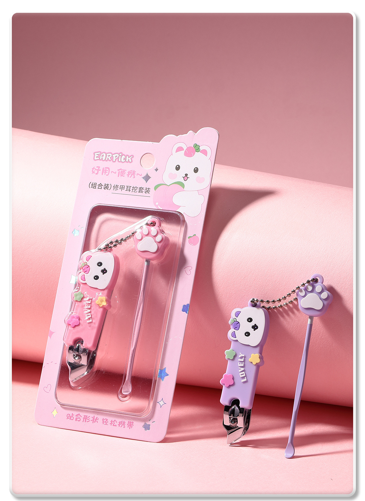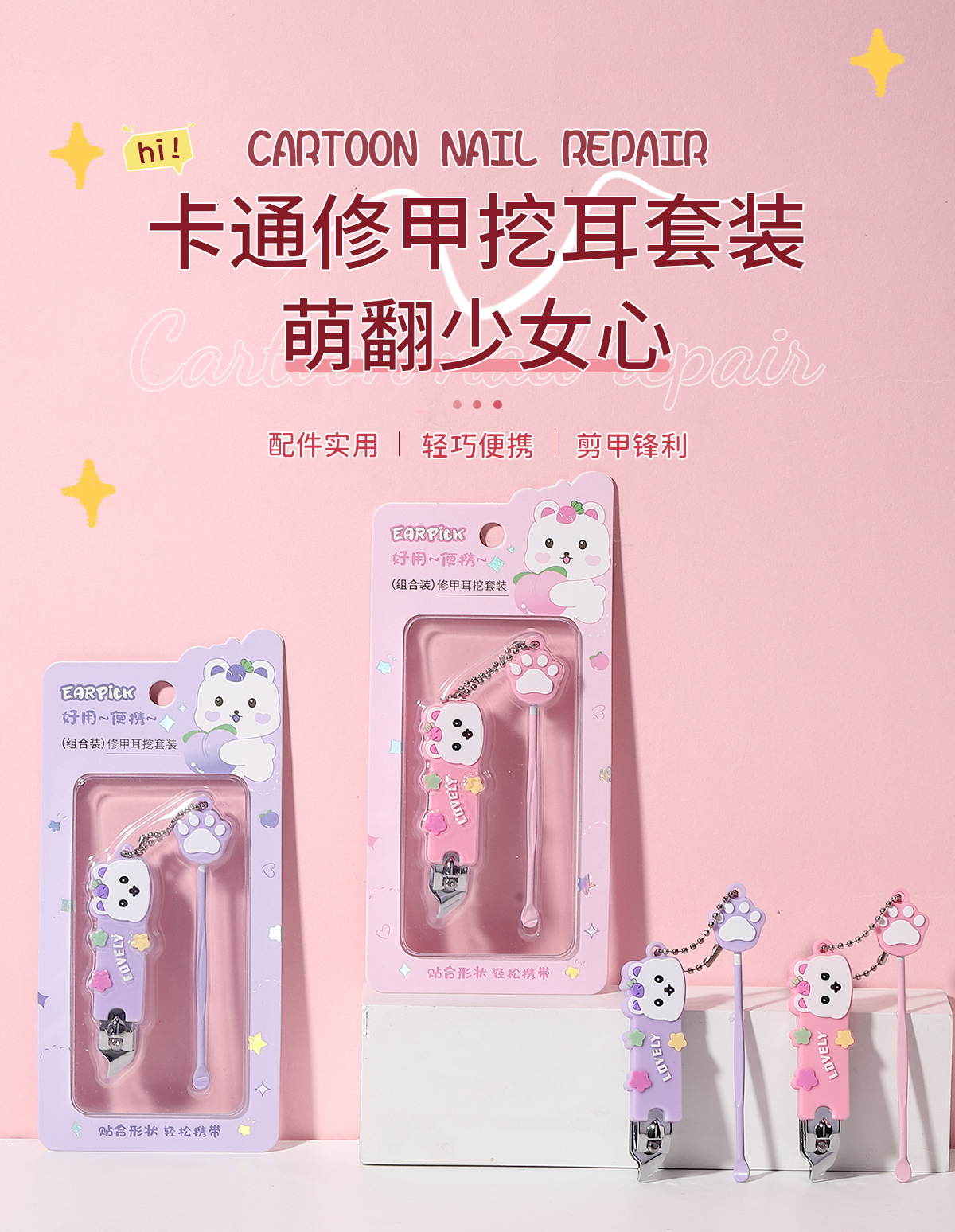 LMLTOP dibujos animados pinzas de uñas orejas de excavación conjunto de orejas de garra de gato cuchara de uñas herramientas de manicuras SY564