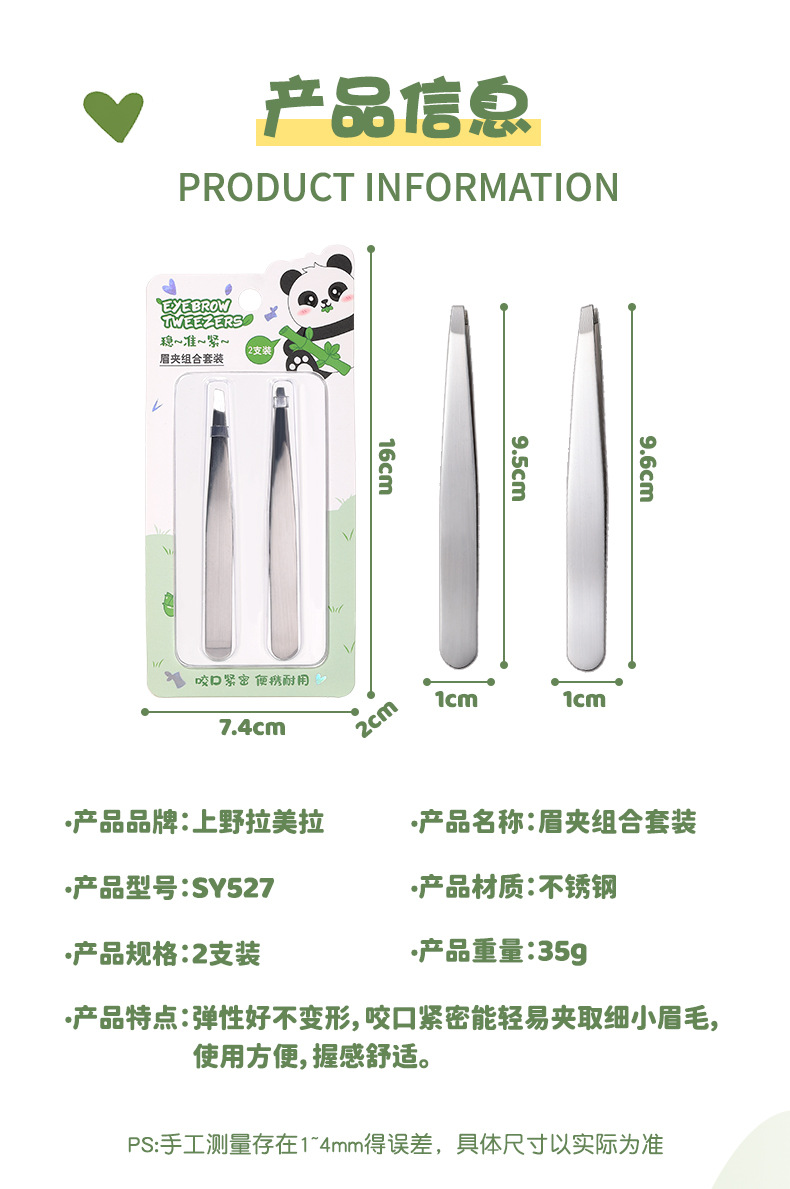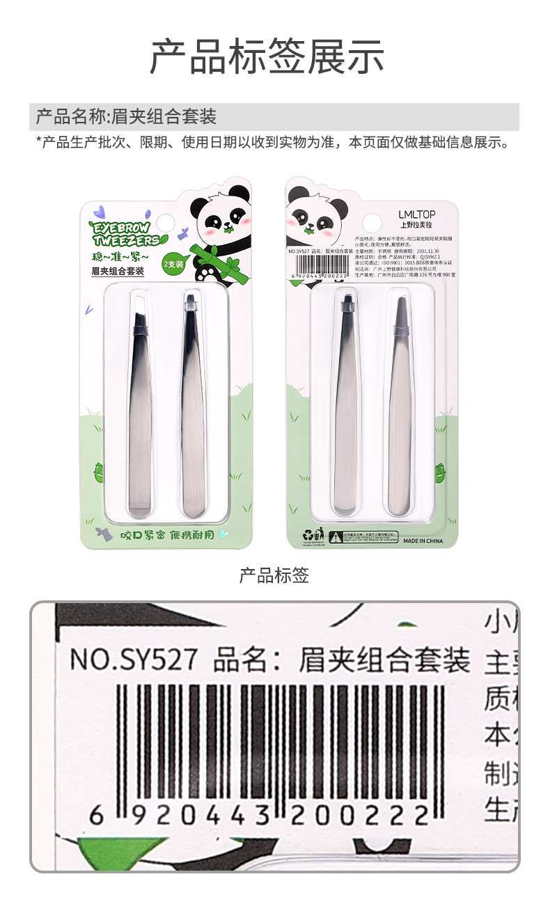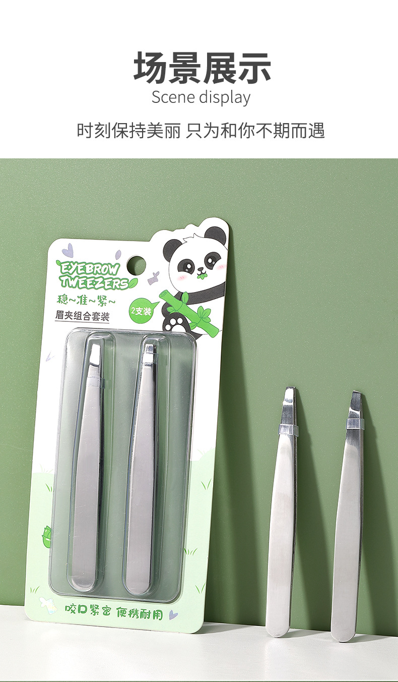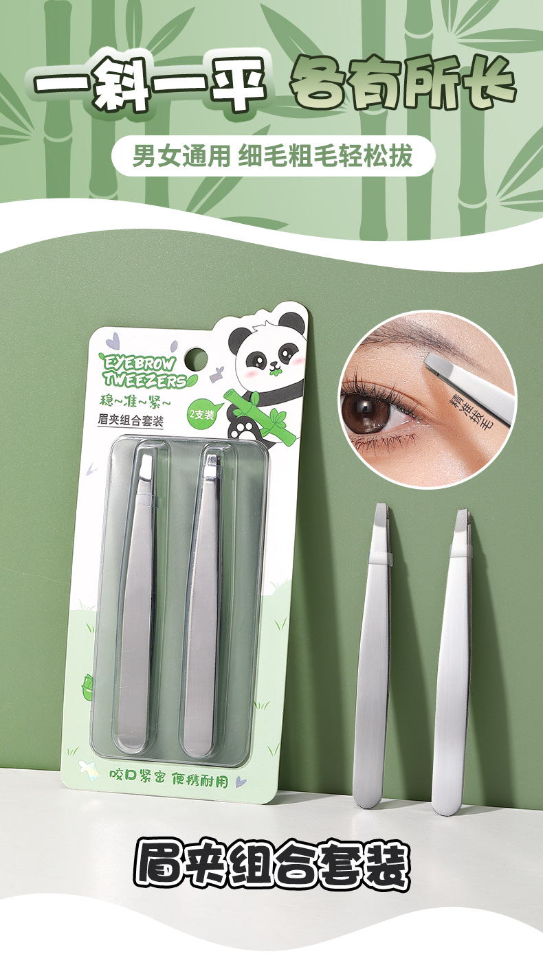 LMLTOP serie panda ceja pinzas dos paquetes de cejas de acero inoxidable plan biselado pinzas de cejas pinzas de cejas SY527