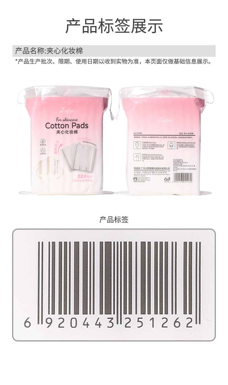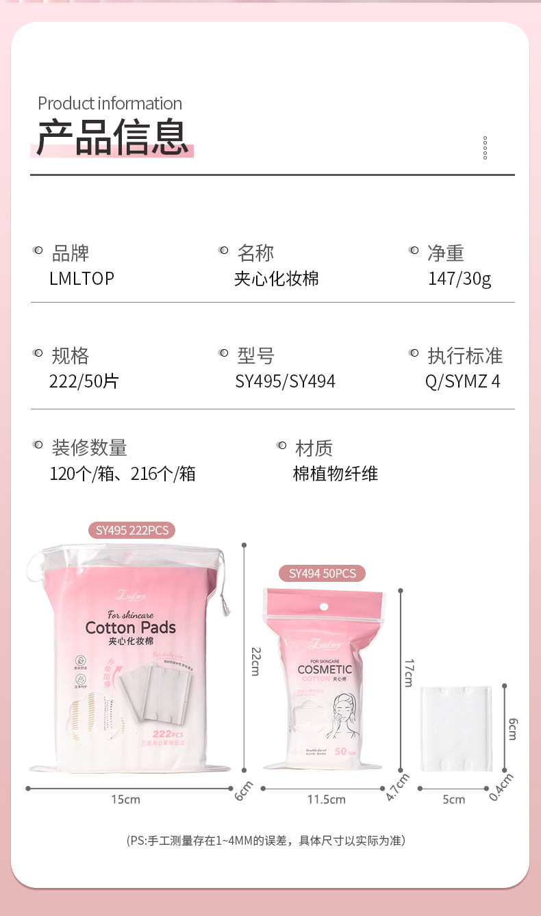LMLTOP almohadilla de algodón con relleno grueso 222 piezas compresa húmeda almohadilla de algodón desmaquillante hidratante SY495