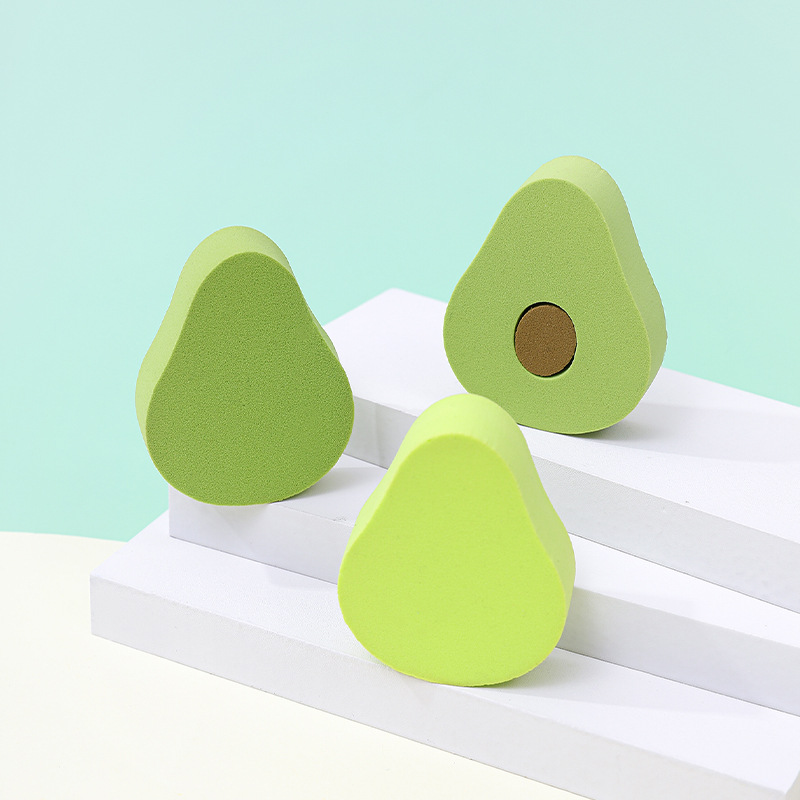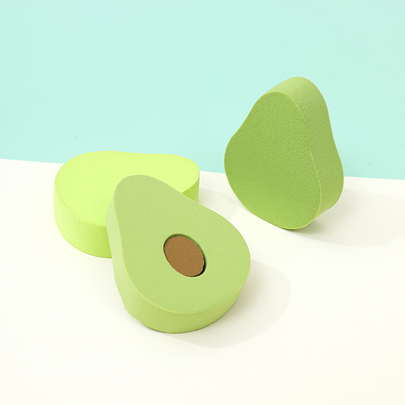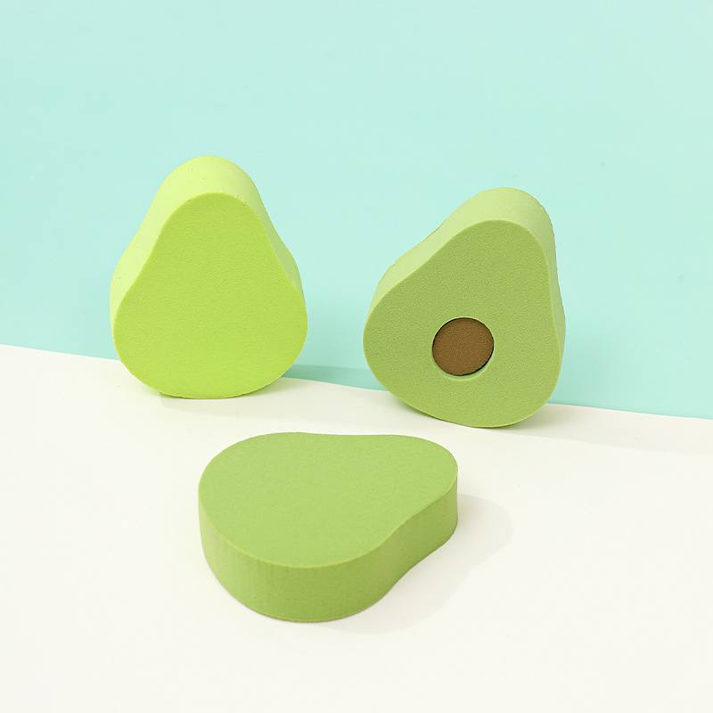 Personalizada serie de polvo de fruta suave forma especial seca húmeda doble uso esponja de maquillaje polvo de aguacate ultra suave forma