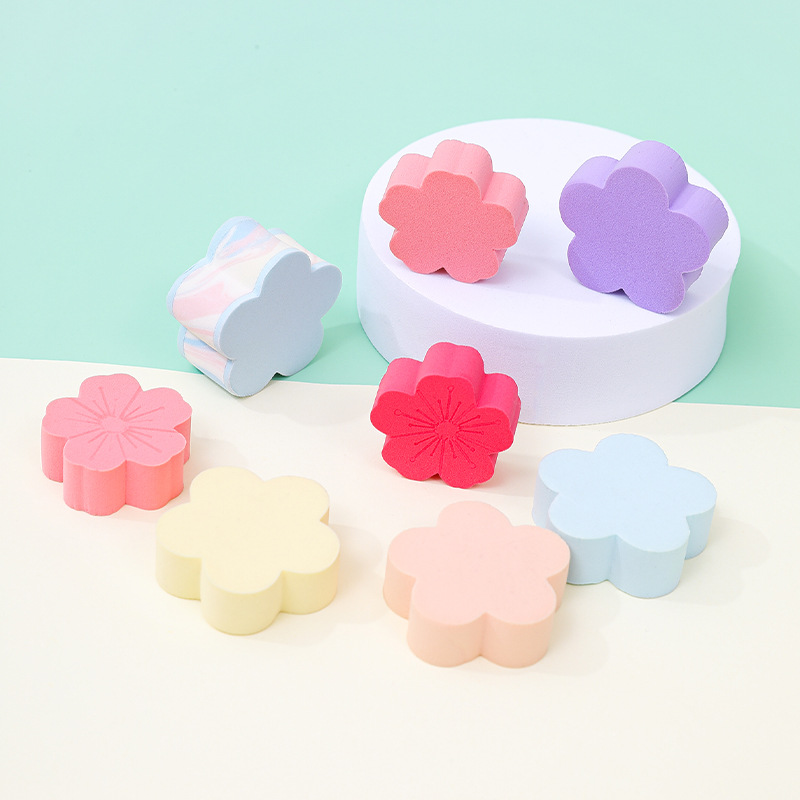 Pequeña flor de cerezo personalizada con polvo plano de forma especial, almohadilla de aire gruesa, no comer polvo, seco y húmedo, polvo de maquillaje, esponja