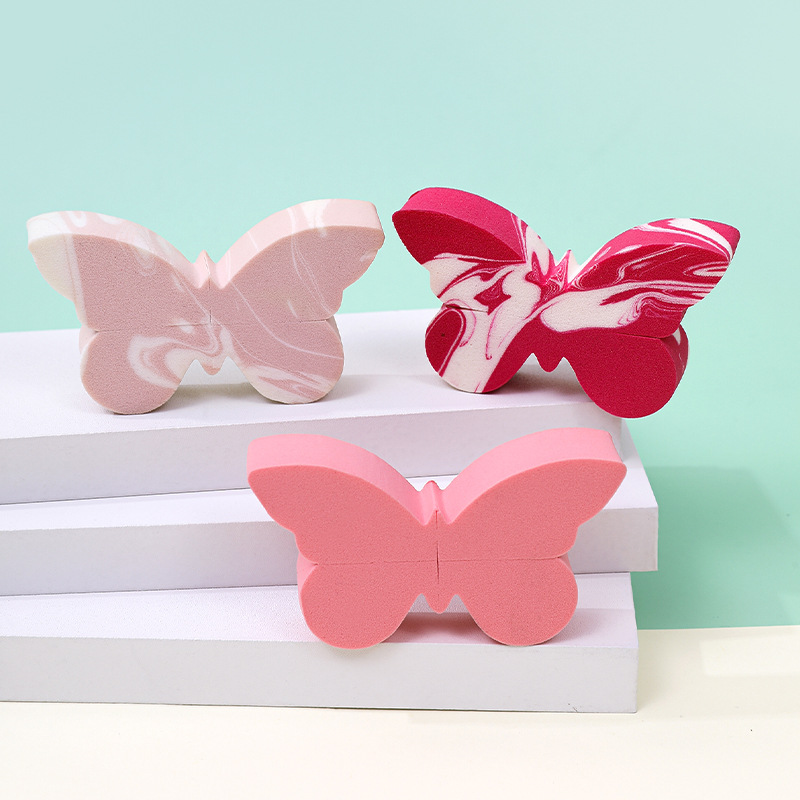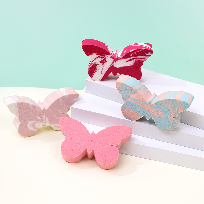 Polvo plano no de látex personalizado almohadilla de aire doble color mariposa polvo herramientas de maquillaje de belleza huevo esponja polvo de polvo
