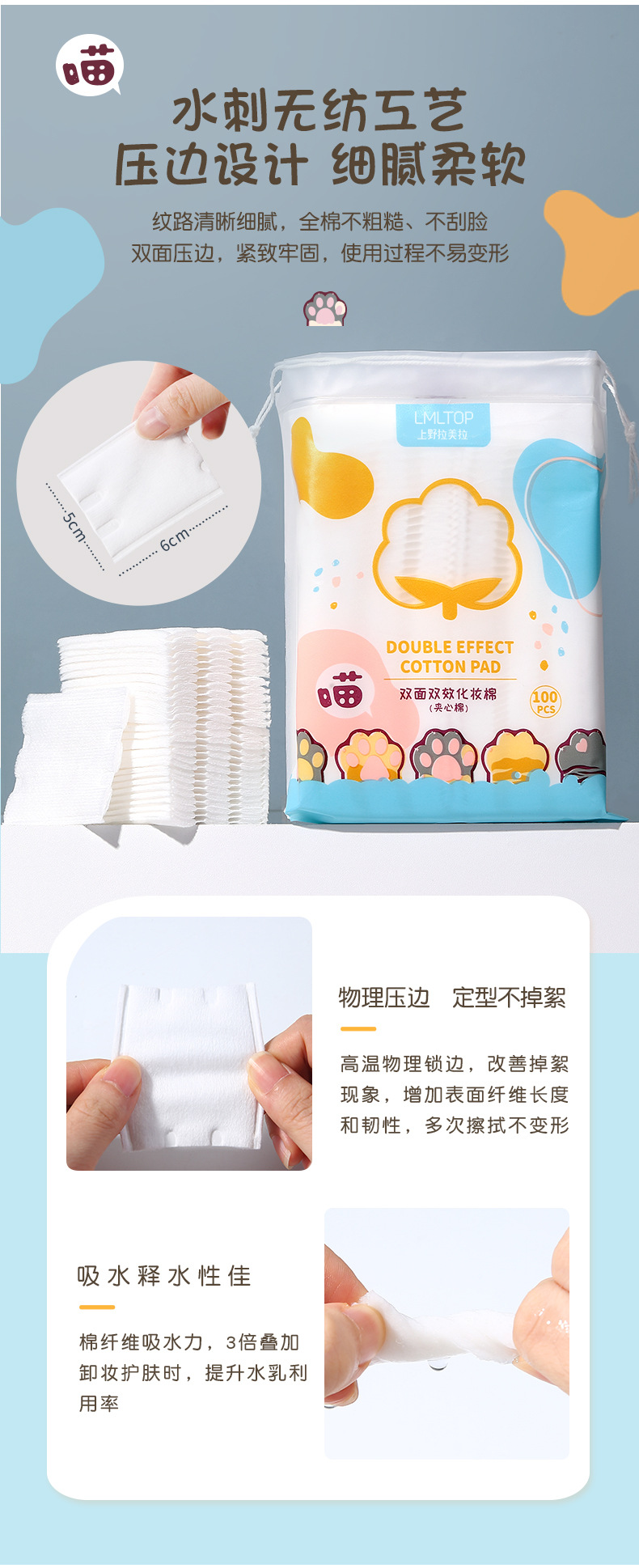 LMLTOP serie de garras de gato engrosado algodón maquillaje sándwich de doble efecto húmedo de desmaquillaje de algodón de desmaquillaje de uñas CXT037