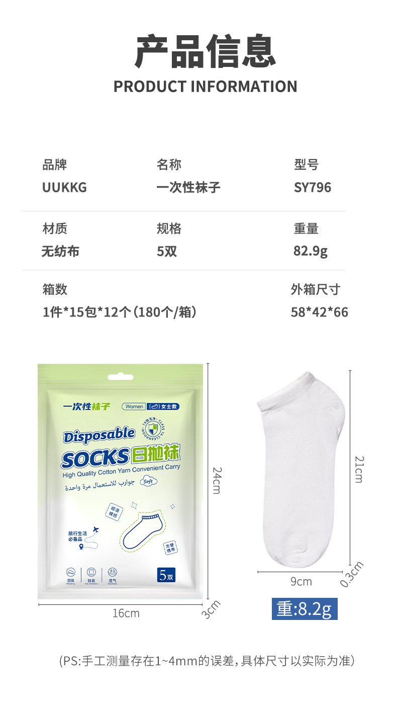 UUKKG calcetines desechables para mujeres 5 pares de viajes portátiles de color sólido calcetines transpirables antiolor sin lavado calcetines de lanzamiento diario