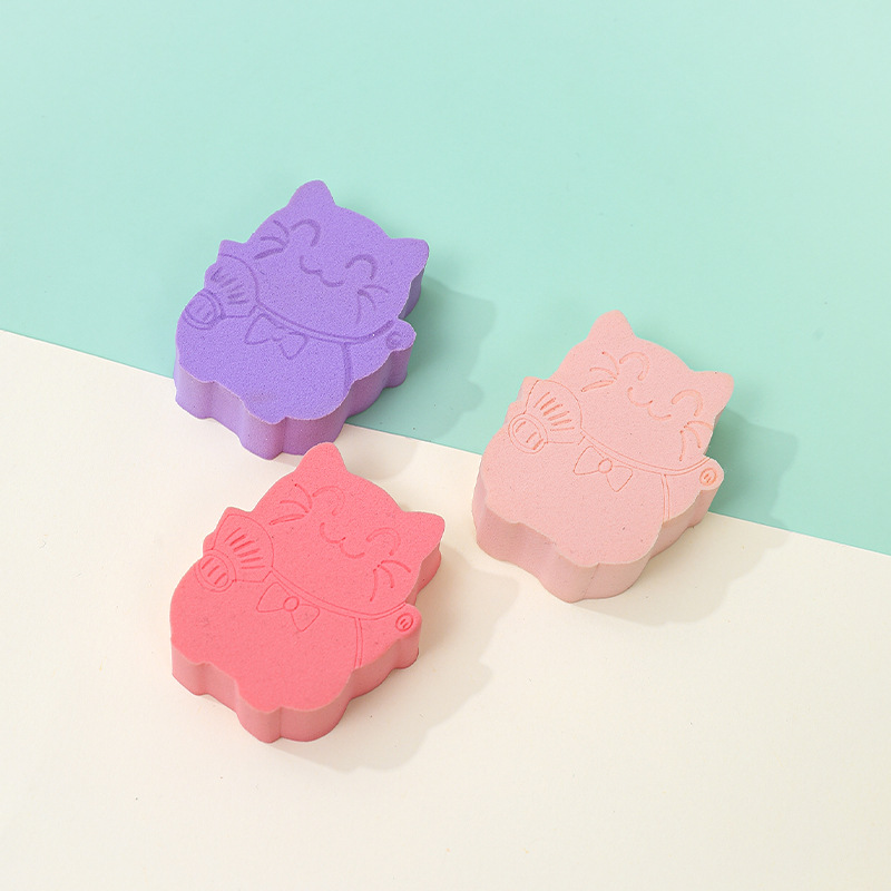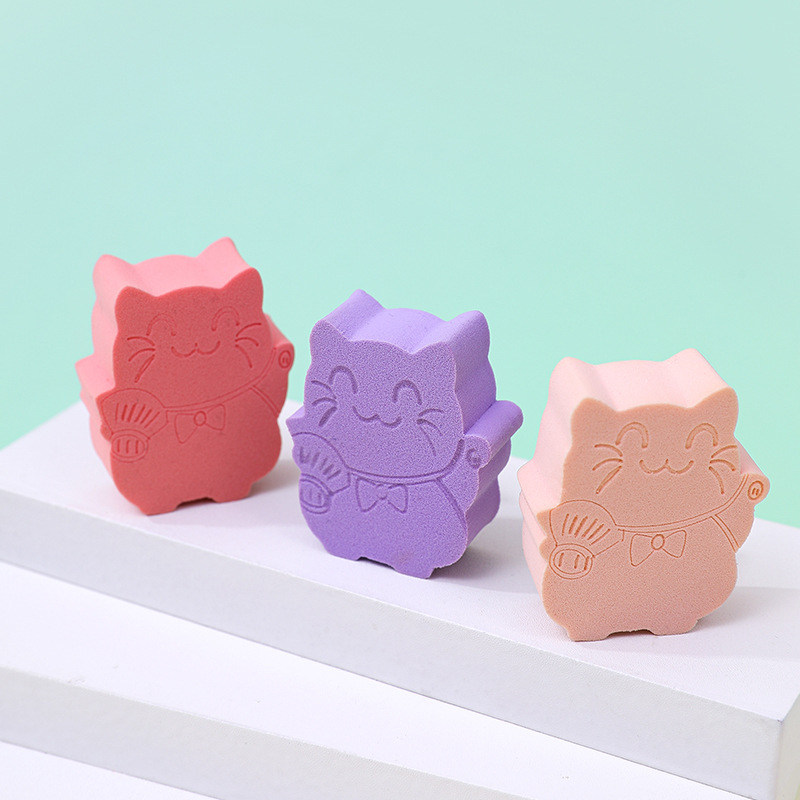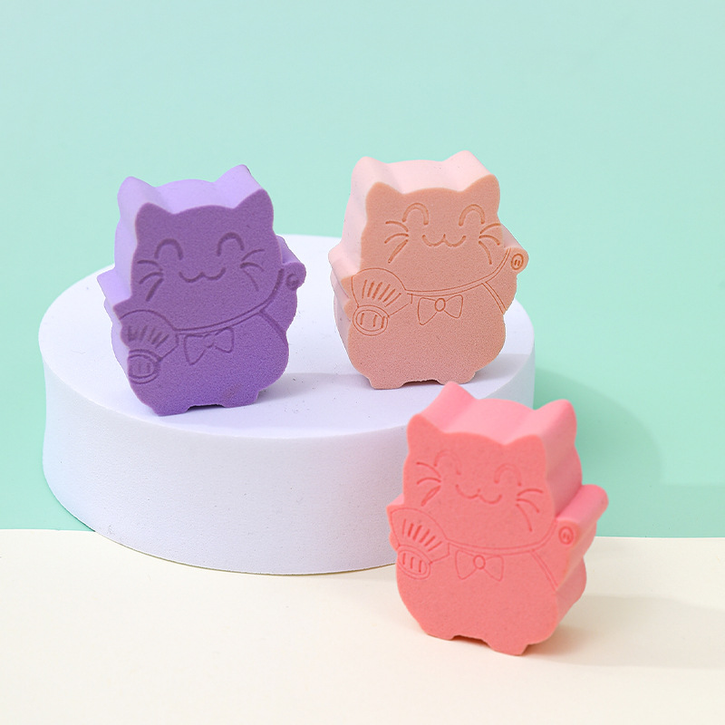 Customizado para atraer dinero gato polvo plano cojín de aire animado animal no comer polvo plano galletas de polvo húmedo doble uso huevo de maquillaje
