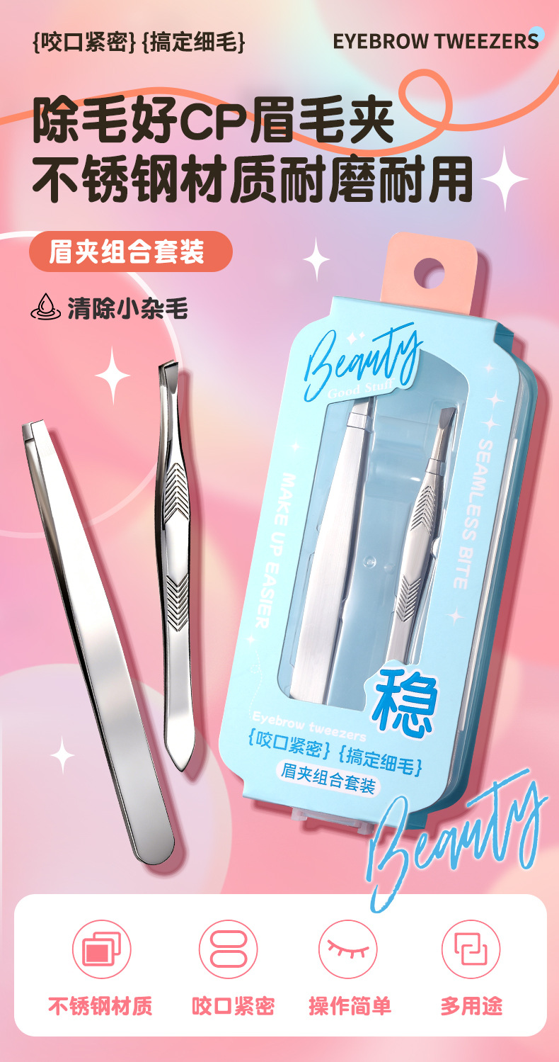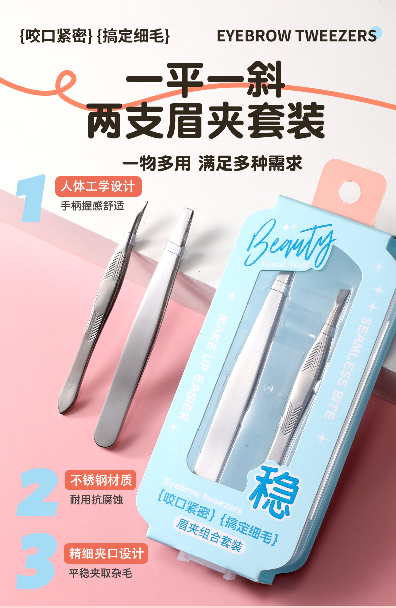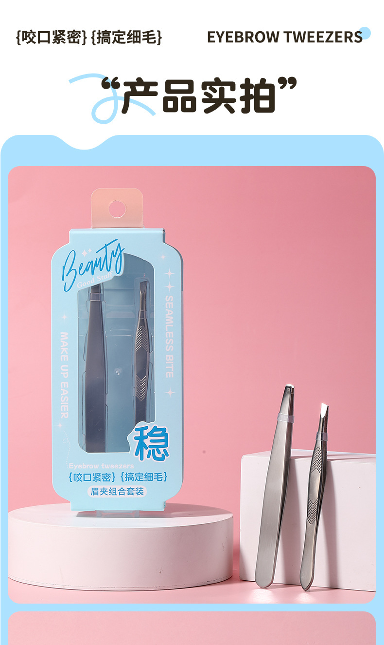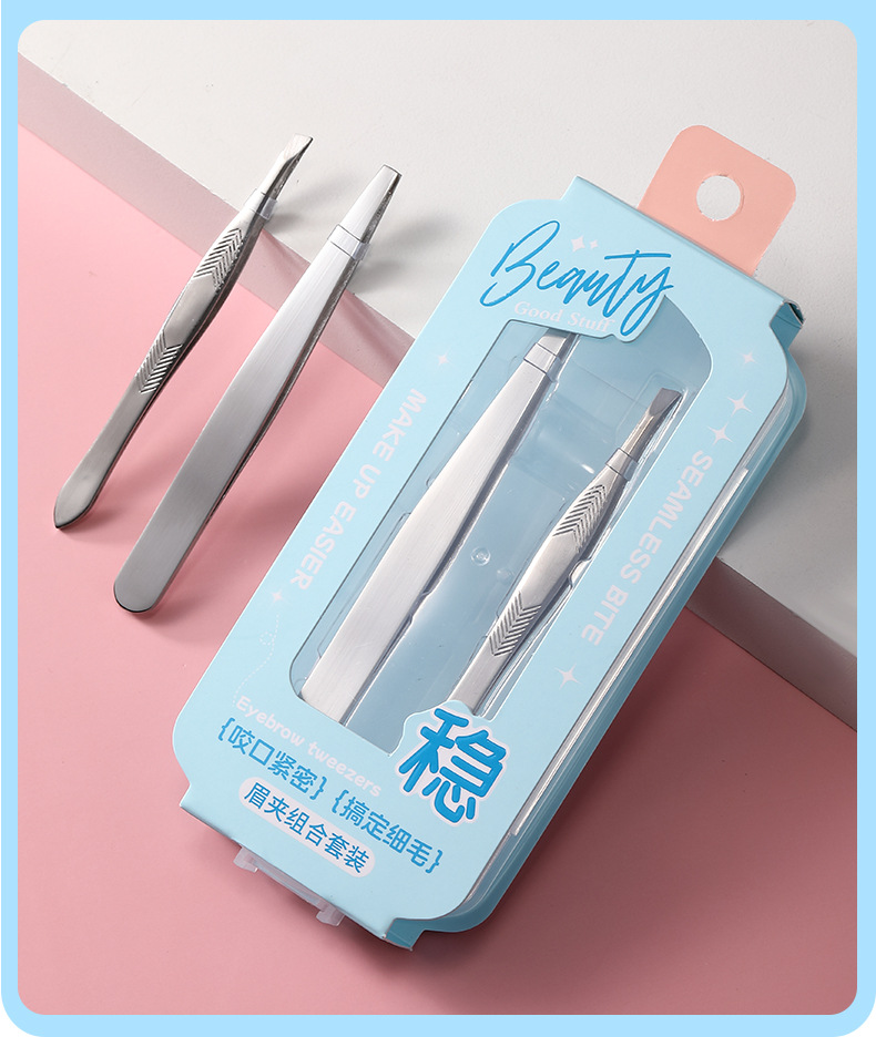 Clip de cejas oblicuo plano LMLTOP Juego de 2 piezas Clip de cejas de acero inoxidable Pinzas para cejas Herramienta de recorte de cejas JJF17