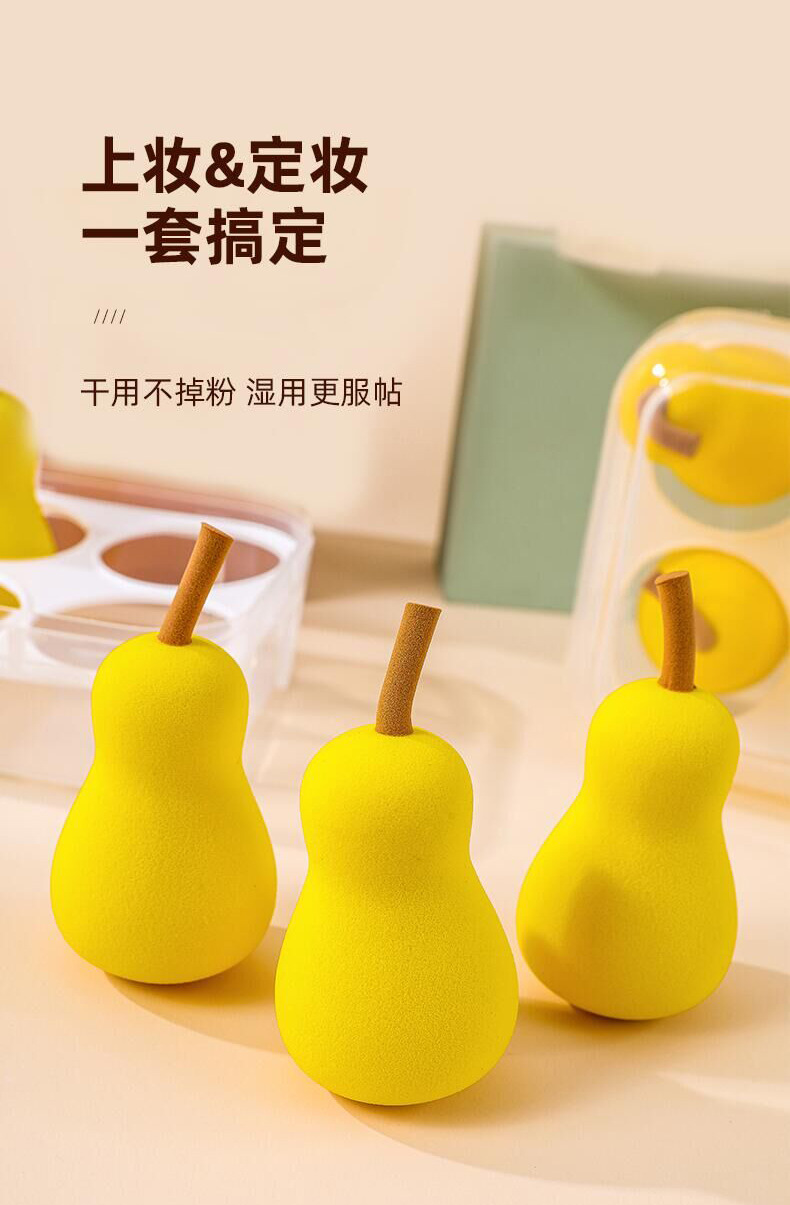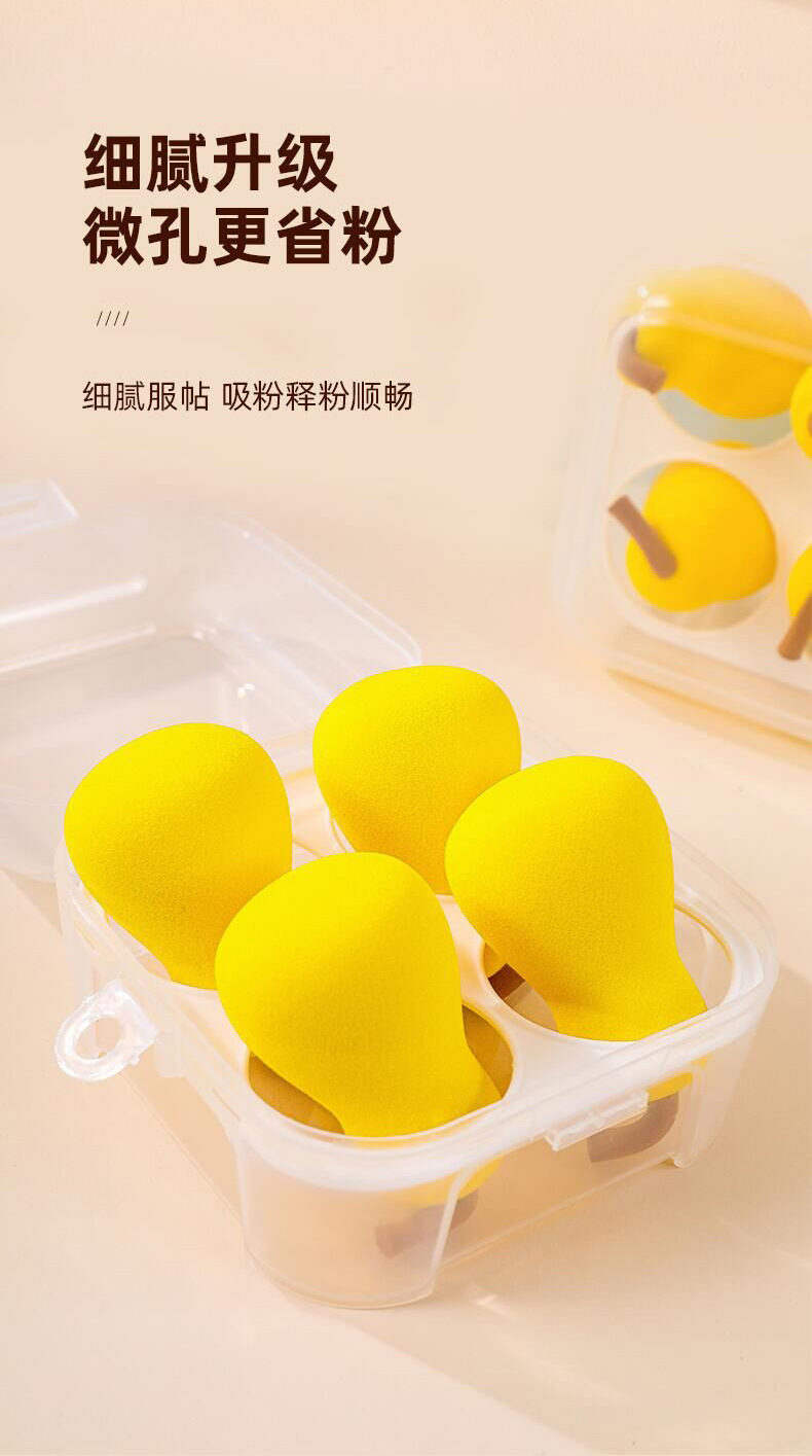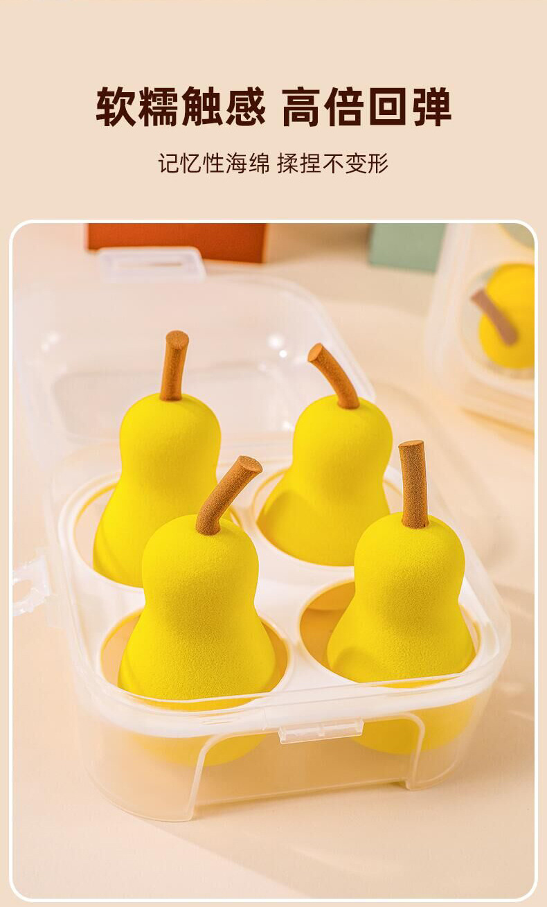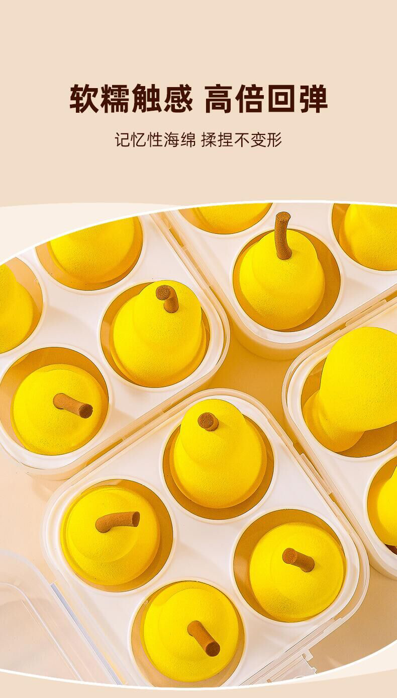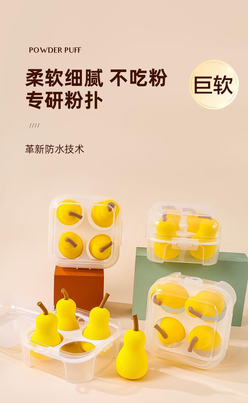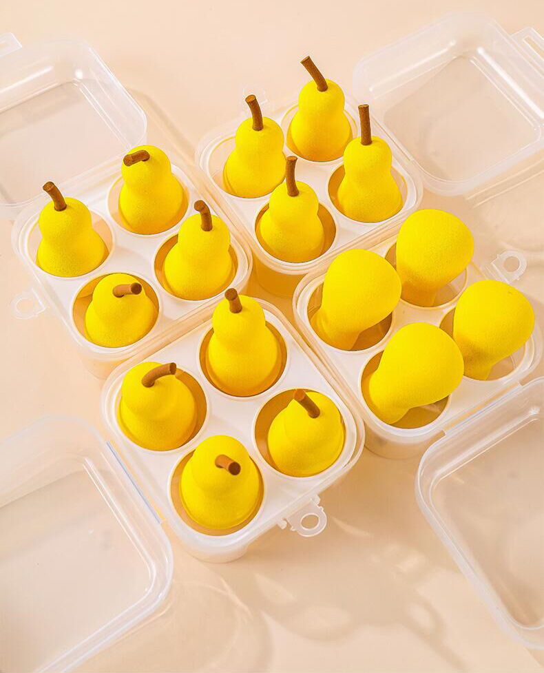 Fábrica en stock 4 caja de huevos de maquillaje en forma de pera serie de frutas secas y húmedas super suaves esponjas de maquillaje huevo en polvo