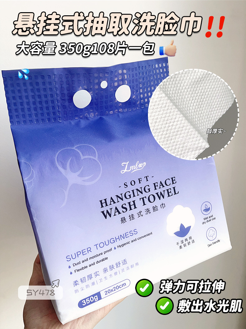 LMLTOP 350g toalla de lavado de cara colgante con patrón de perlas para aumentar el grosor toalla de limpieza suave de algodón desechable SY478