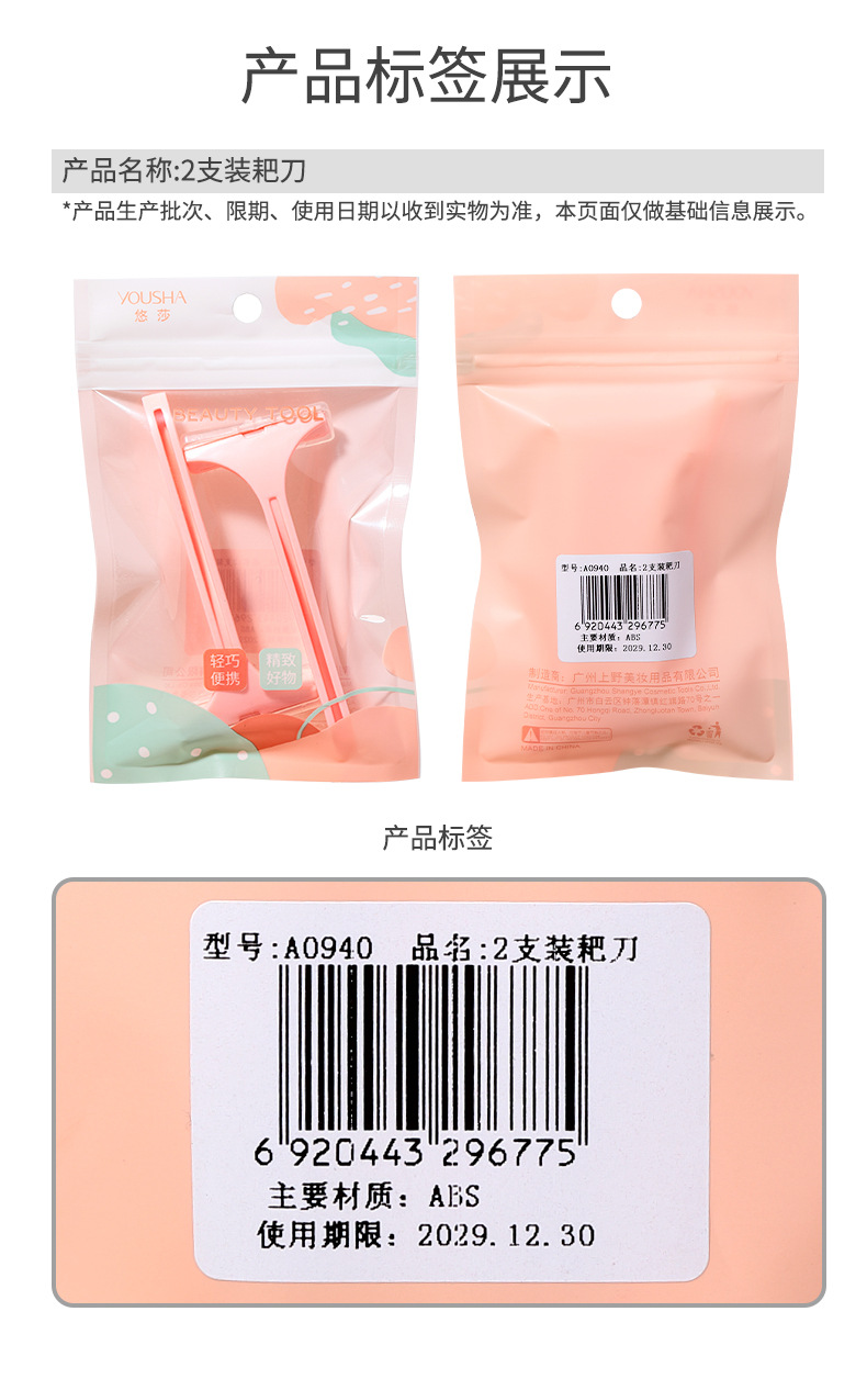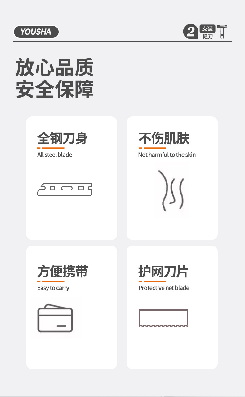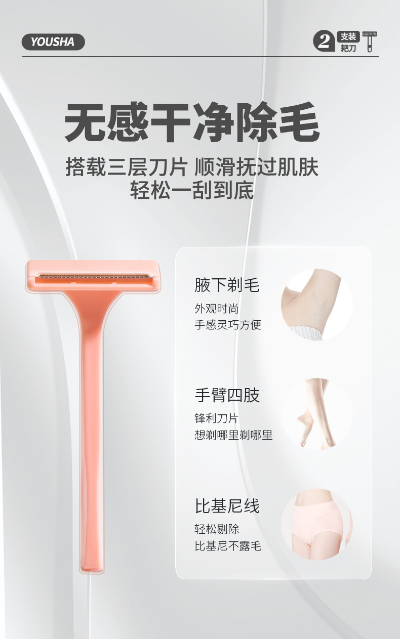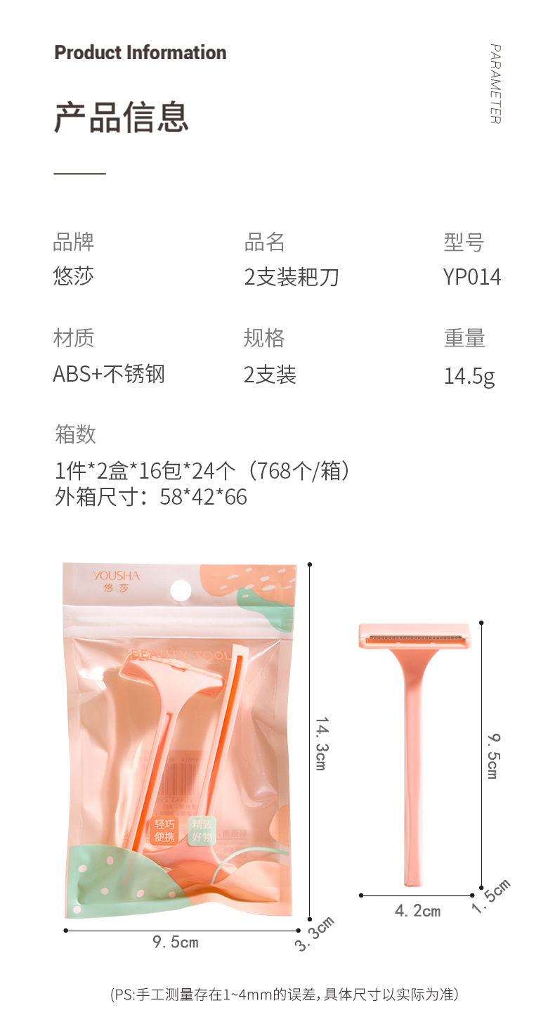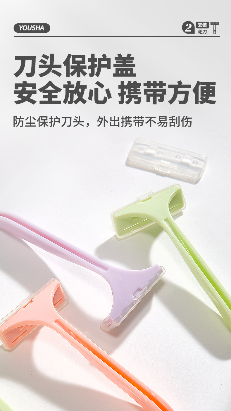 Yousha 2 cuchillos de rastrillo con red protectora afeitadora afeitadora manual para quitar el vello de las axilas y el vello de las piernas YP014