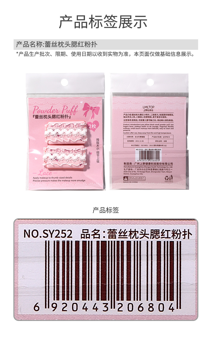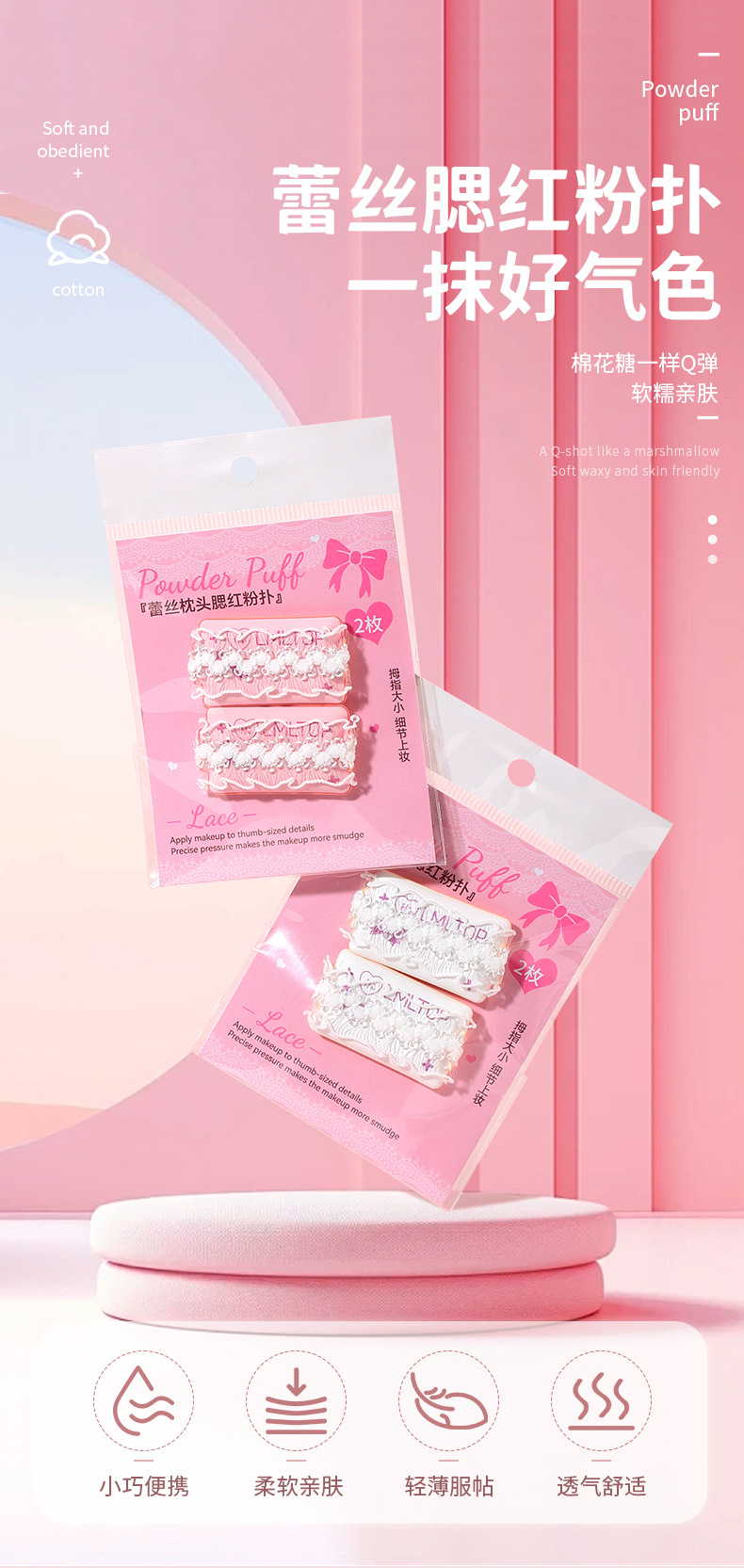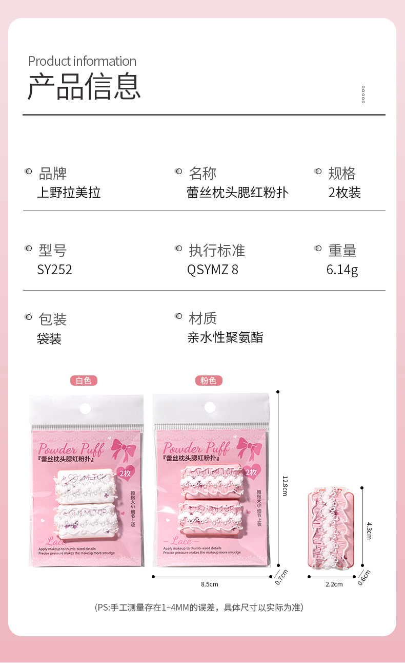 Almohada de encaje LMLTOP Puff de rubor 2 paquetes de maquillaje de rubor en polvo Cojín Puff de dedo SY252