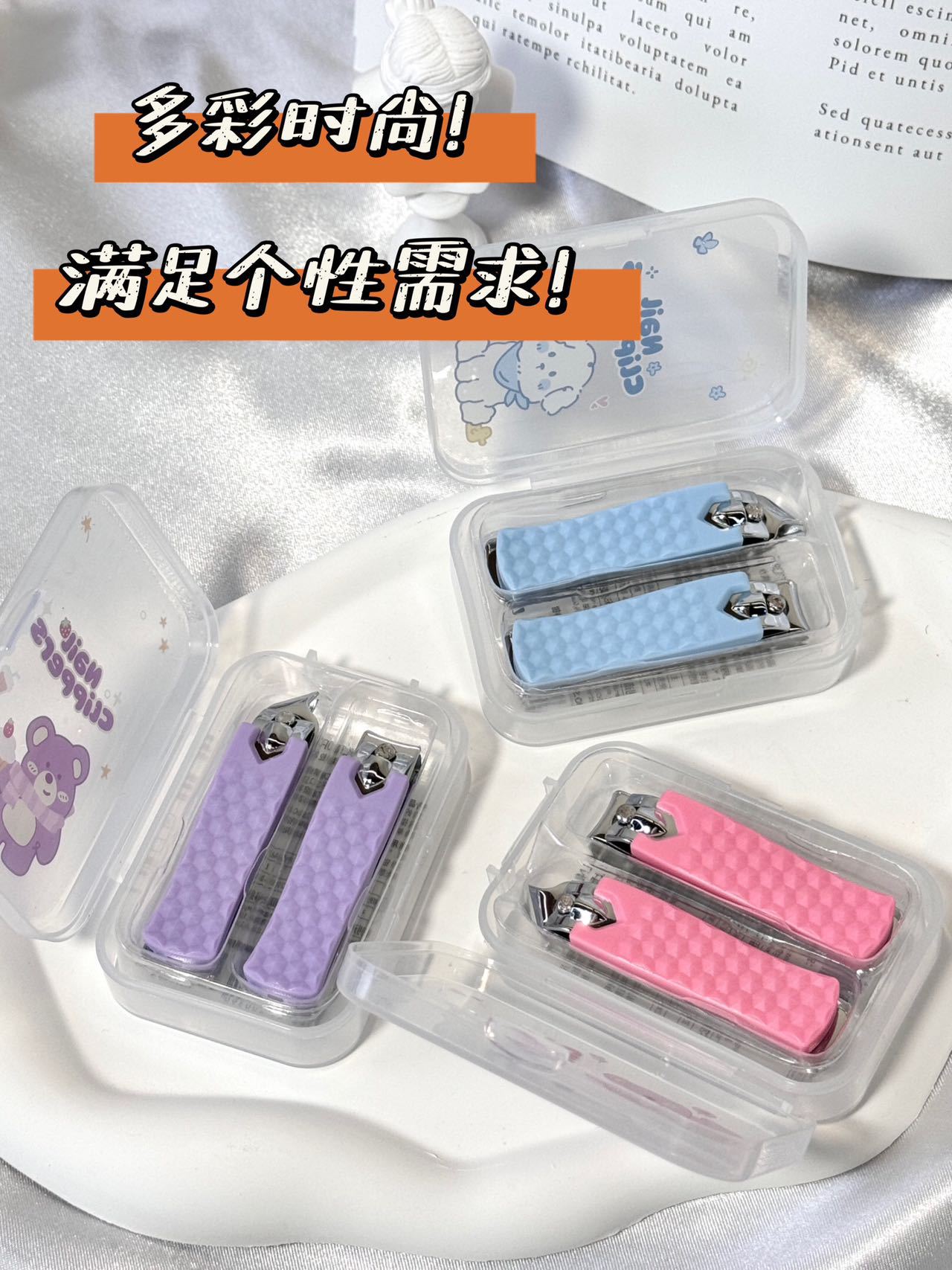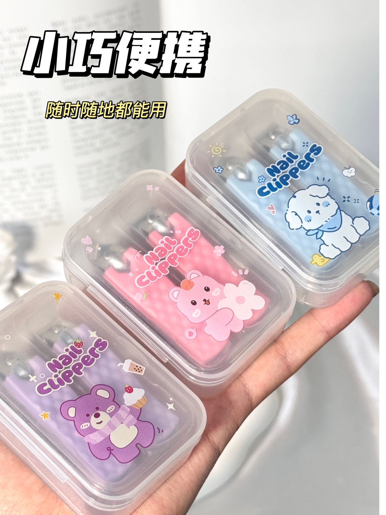 Juego de cortaúñas de dibujos animados LMLTOP cortaúñas biseladas planas de acero inoxidable manicura 2 paquetes SY349