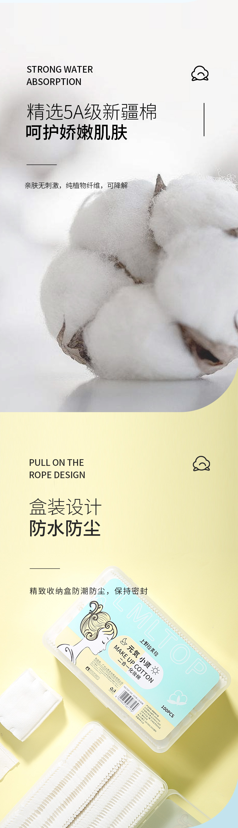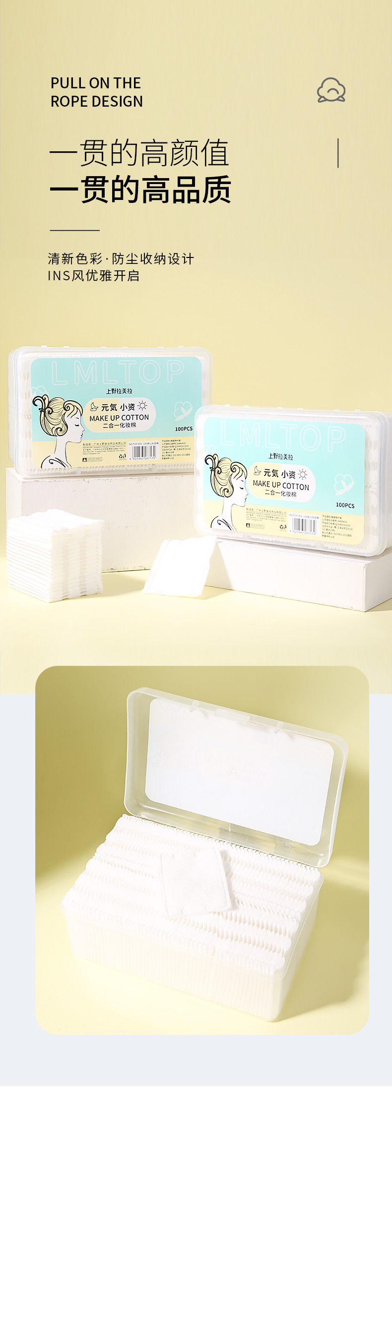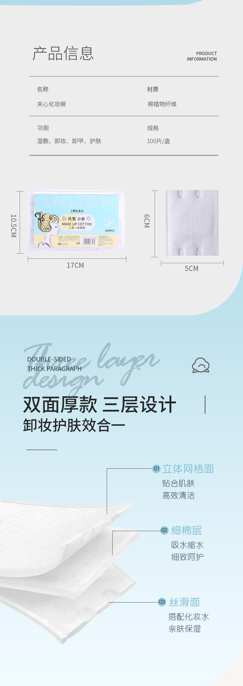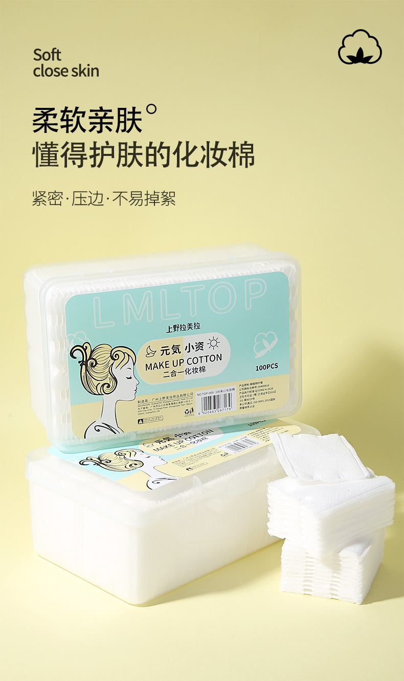 LMLTOP 100 piezas sándwich maquillaje de algodón en caja de doble cara de doble efecto engrosado removedor de maquillaje almohadilla de algodón TOP-009