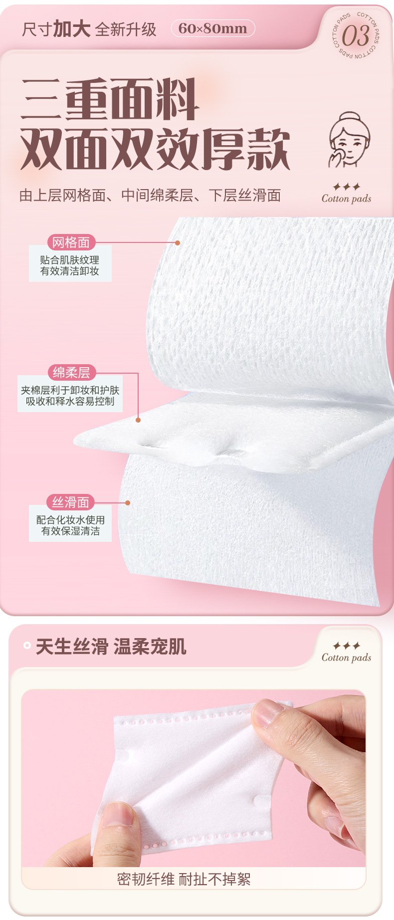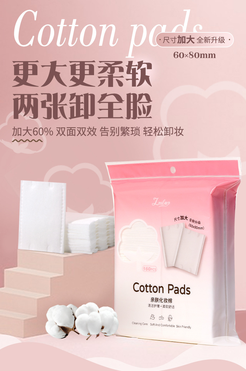 LMLTOP tamaño ampliado almohadilla de algodón sándwich 160 piezas XL desmaquillante grueso compresa húmeda almohadilla de algodón SY497