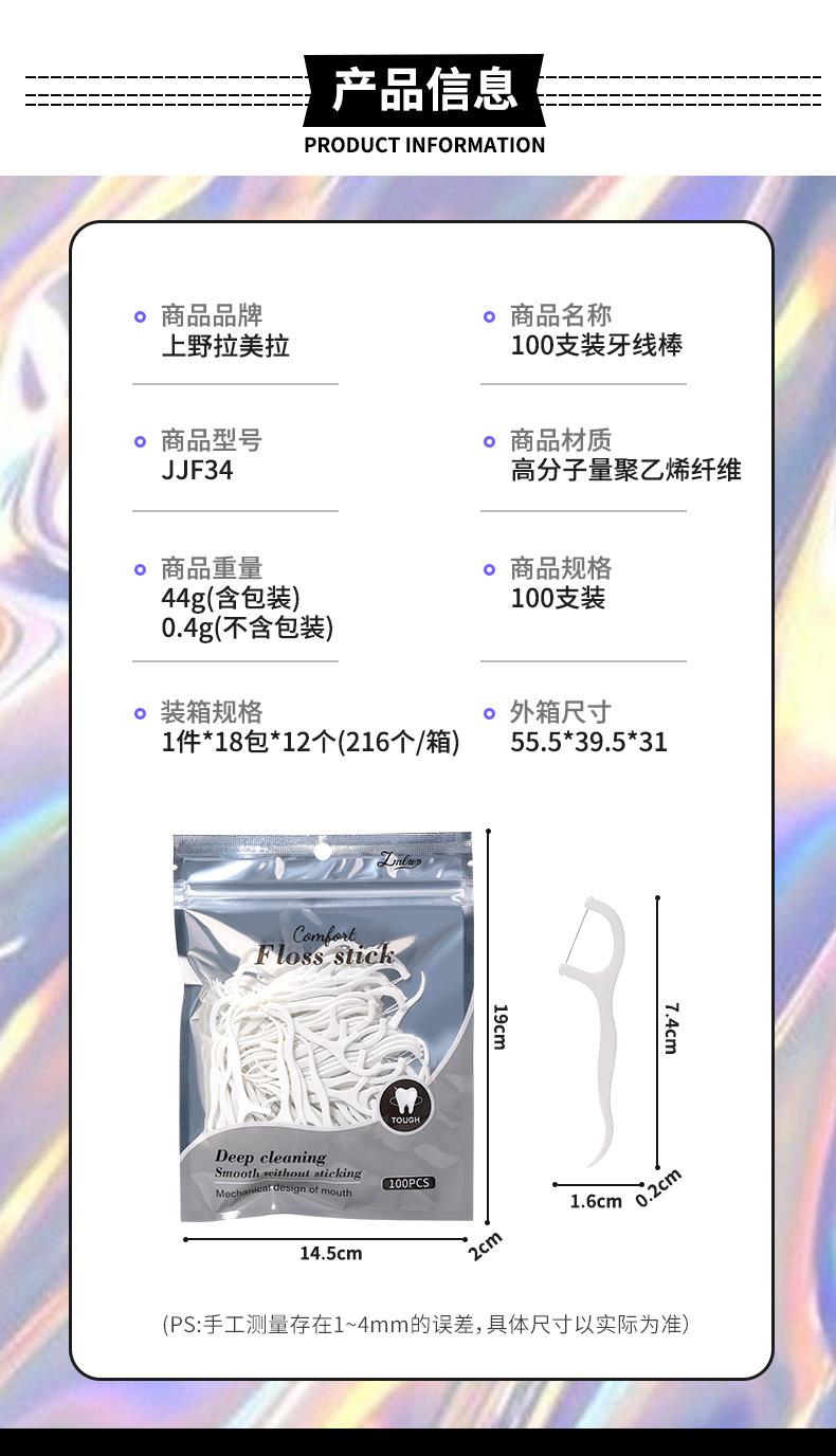 LMLTOP 100 varillas de hilo dental, limpieza oral, varillas de hilo dental blanco, palillos de dientes desechables, hilo fino JJF34