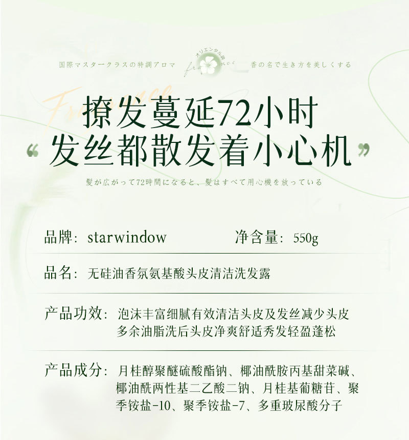 Star Window Sin aceite de silicona Té blanco Fragancia Champú de aminoácidos anticaspa Acondicionador ligero y esponjoso Mascarilla para el cabello