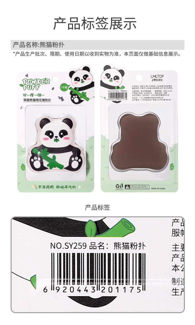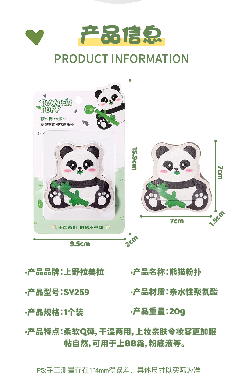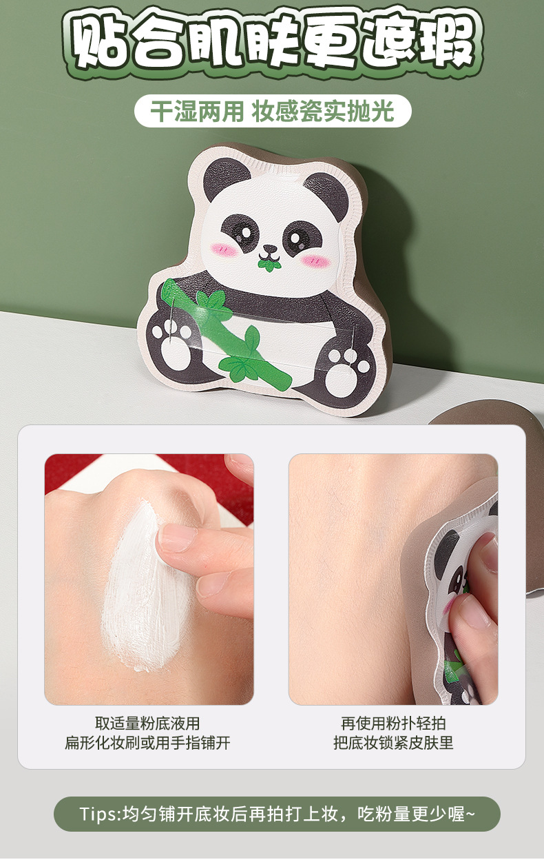 LMLTOP adorable panda marshmallow polvo seco y húmedo doble uso cinta transparente maquillaje polvo de cojín de aire SY259