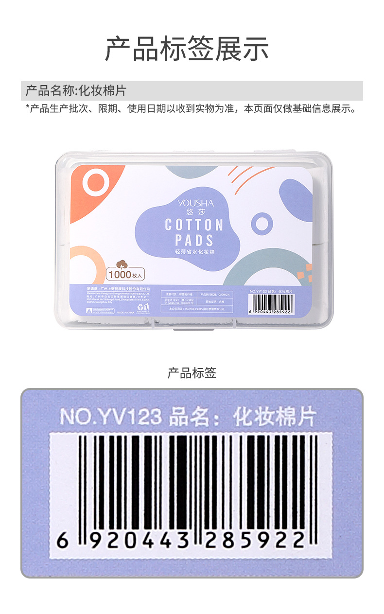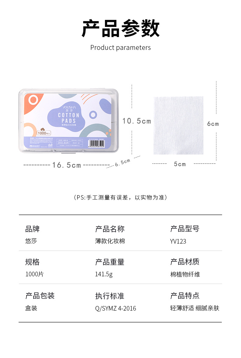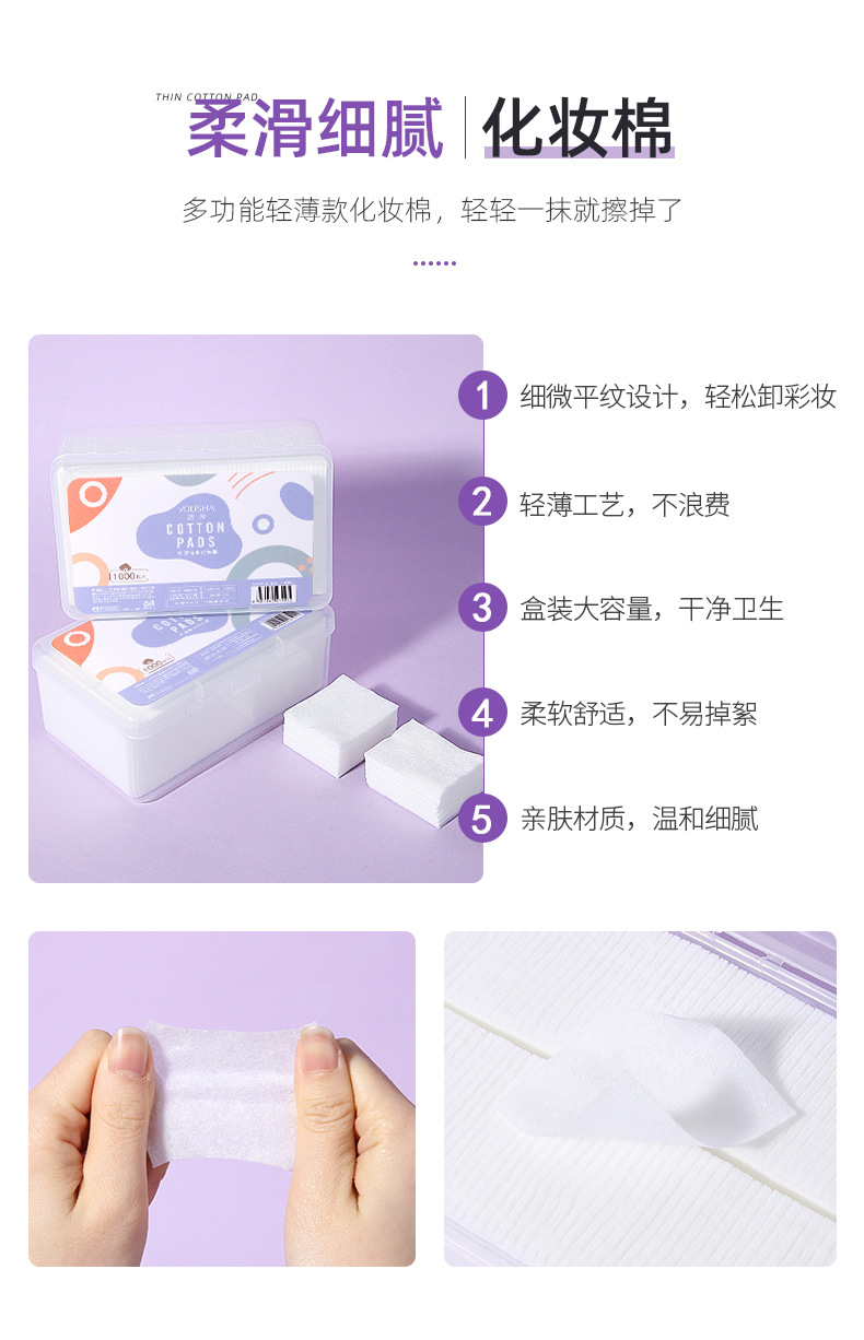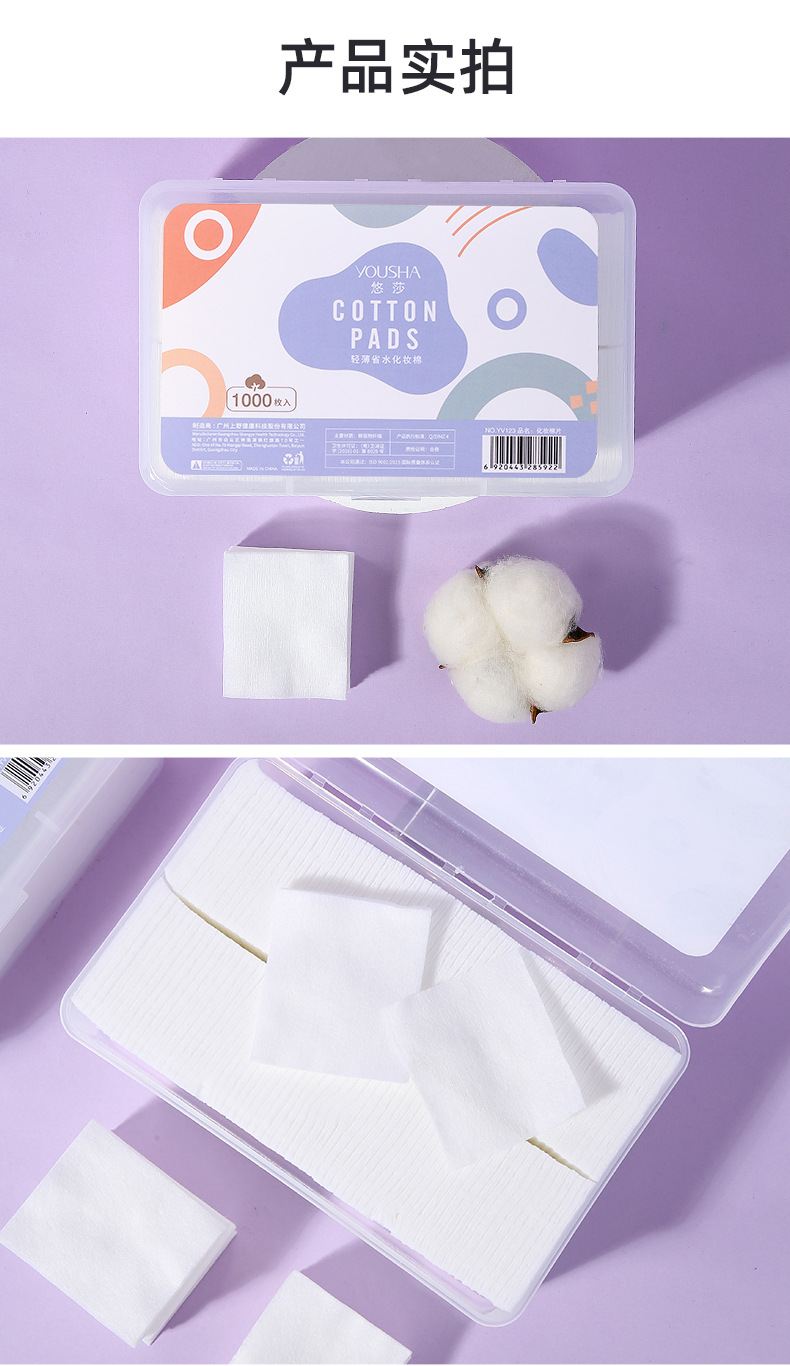 Yousha 1000 piezas de maquillaje en caja delgada de algodón desechable de ahorro de agua removedor de maquillaje amigable con la piel hoja de algodón compresa húmeda YV123