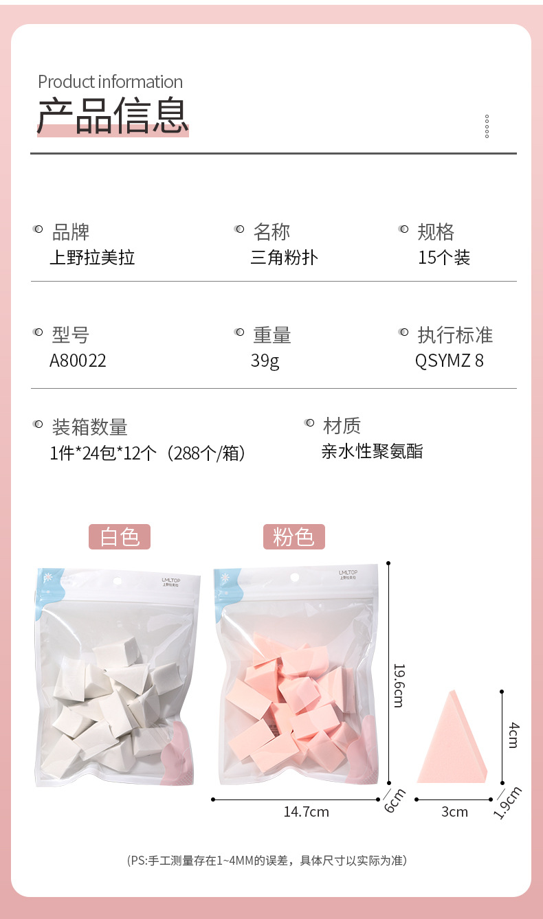 LMLTOP triángulo polvo 15 paquetes hidrofílico agua de remojo gran polvo de maquillaje húmedo y seco A80022