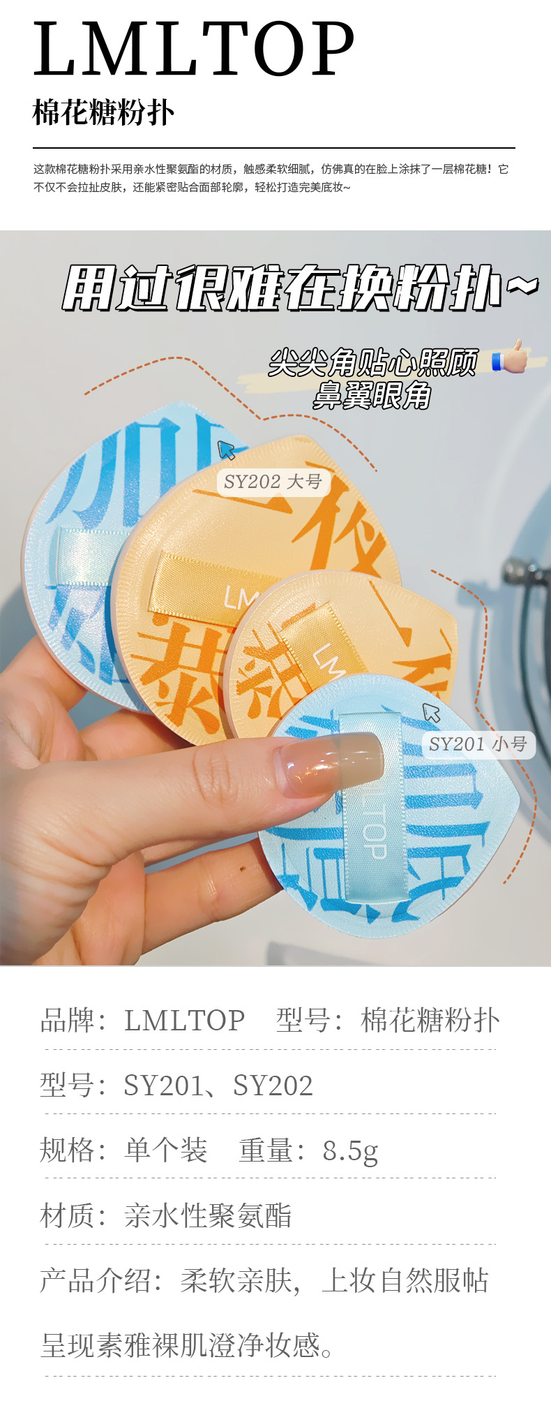 Lmltop de algodón de gran tamaño pequeño algodón de caramelo hidrofílico húmedo y seco de doble uso maquillaje aire cojín puff SY202