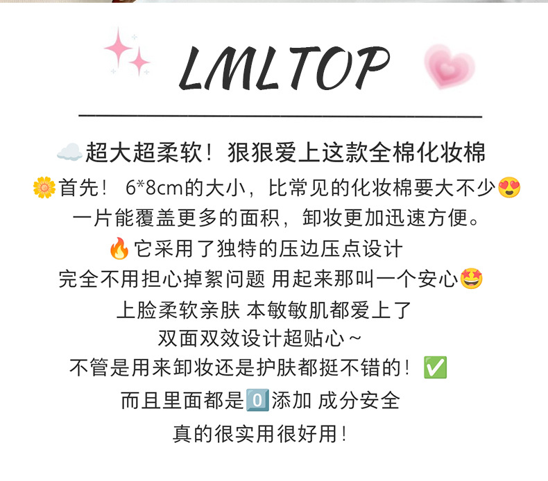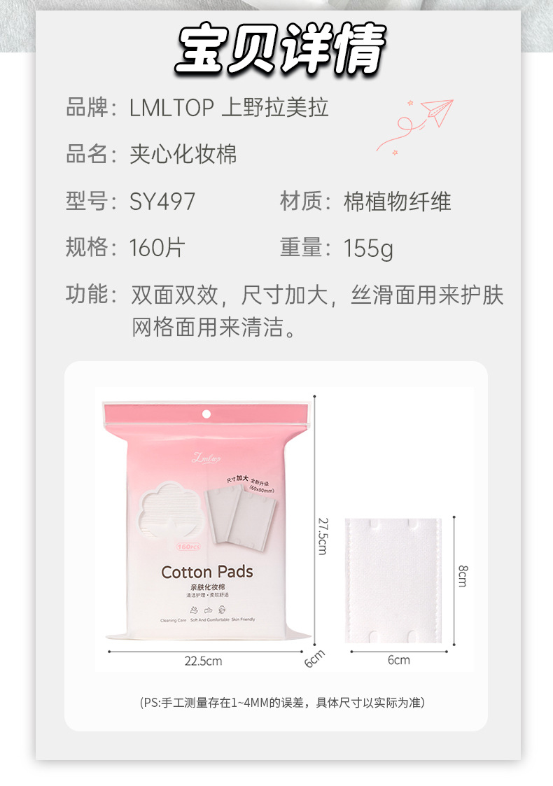 LMLTOP XL almohadilla de algodón con relleno ampliado 160 piezas, desmaquillador grueso, desmaquillador, compresa húmeda, almohadilla de algodón SY497