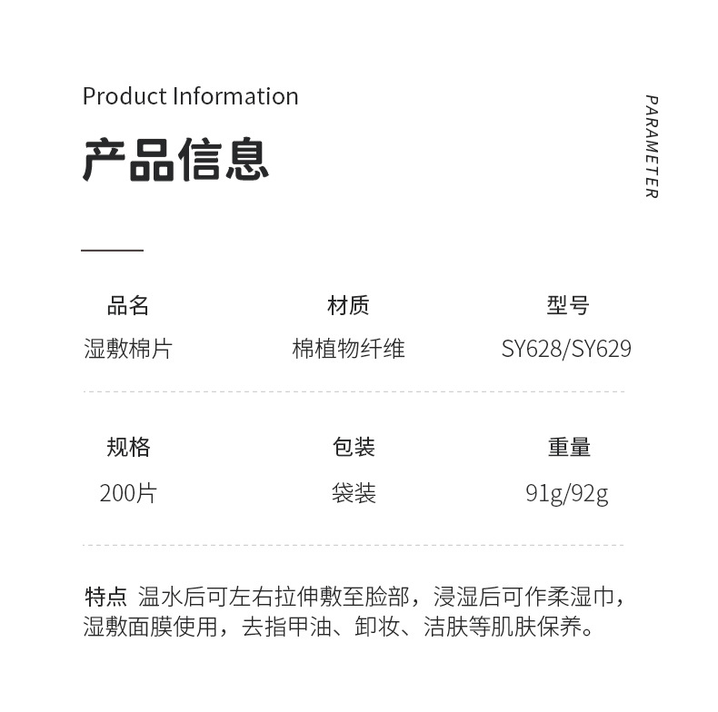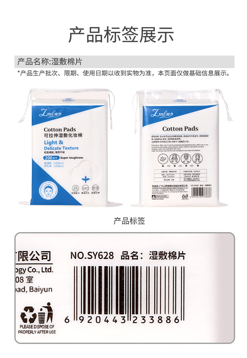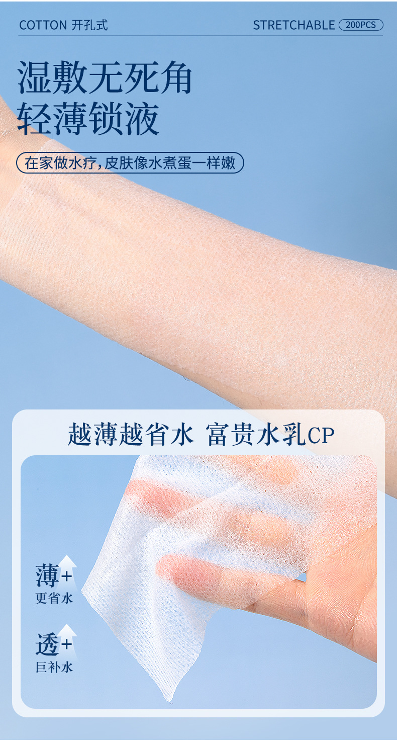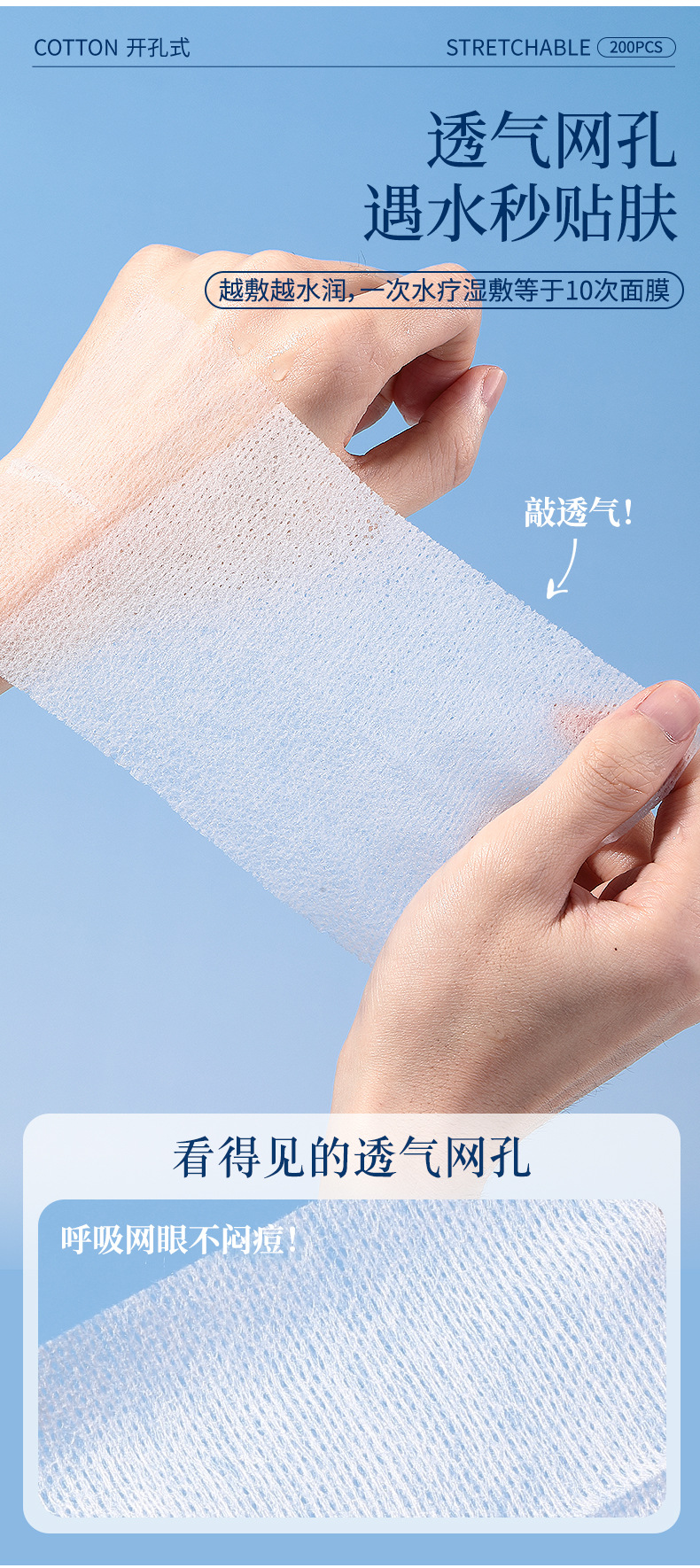 LMLTOP algodón húmedo estirable para la cara, algodón húmedo abierto sin cortar, algodón húmedo SY628