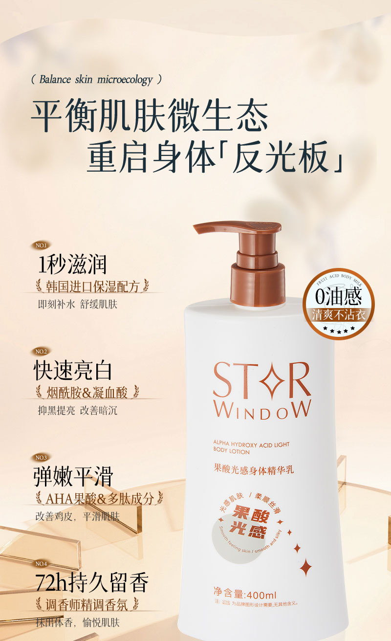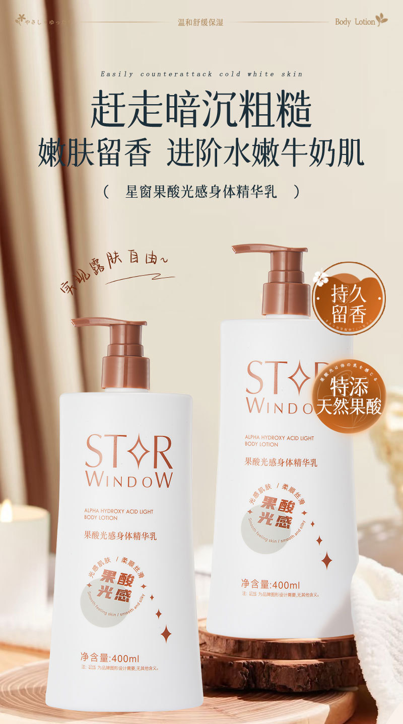 Star Window Fruit Acid Light Moisturizing Body Lotion, fragancia duradera, piel refrescante e hidratante, esencia corporal hidratante