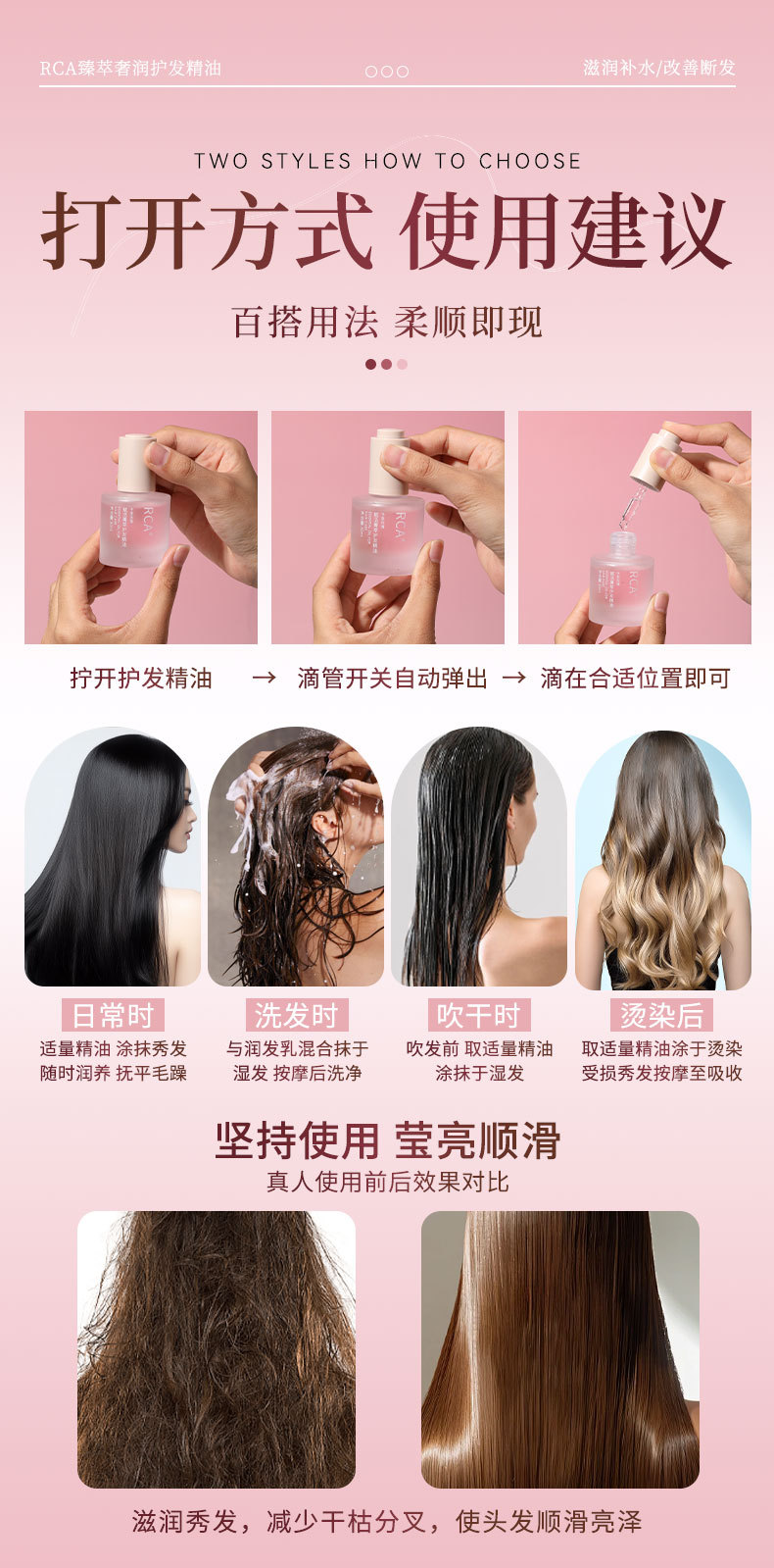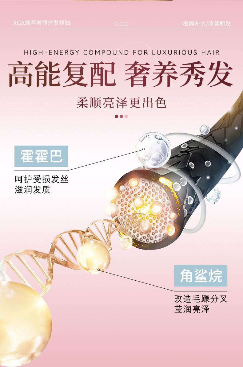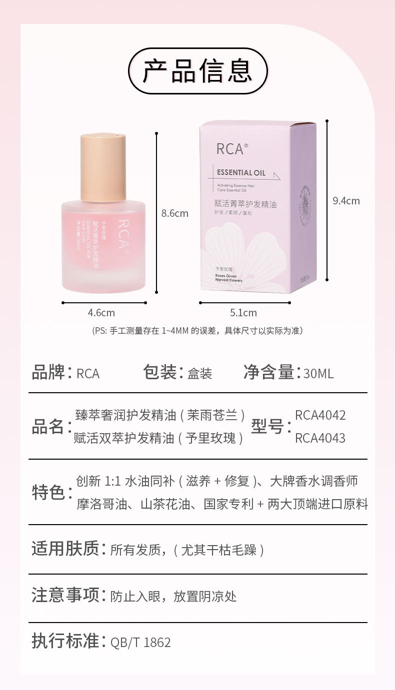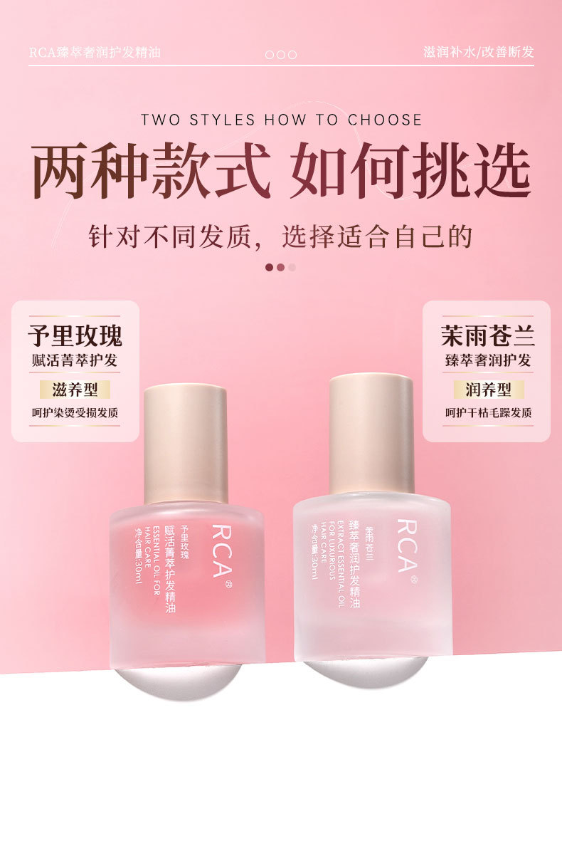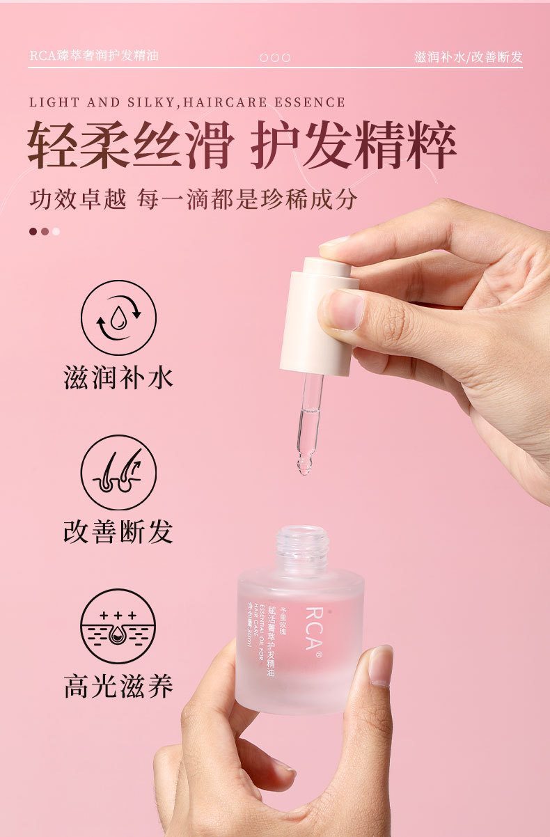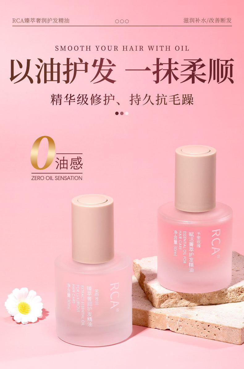 RCA cuidado del cabello aceite esencial 30ml de reparación de cabello seco y maníaca cola teñido y planchado dañado suave y suave aceite desechable para el cabello