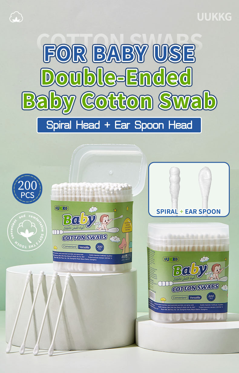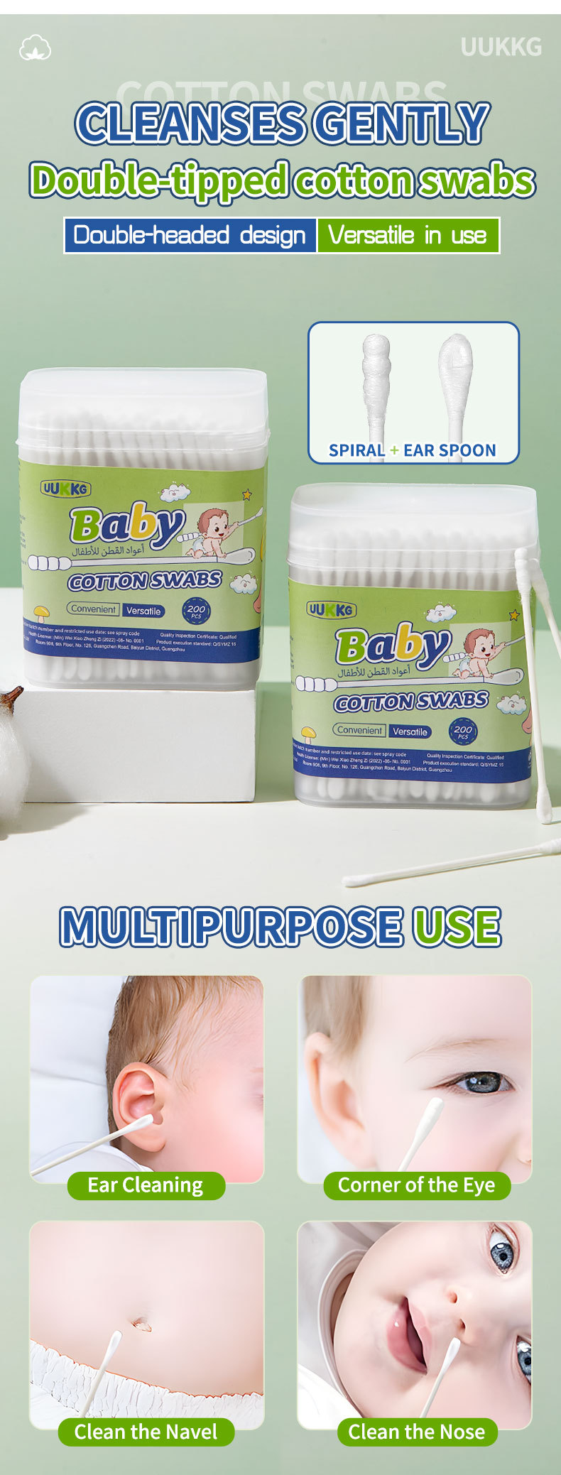 UUKKG Baby Special Double Head Ear Spoon, 200 orejas, orejas limpias, algodón de cabeza pequeña, exclusivo para transfronterizos