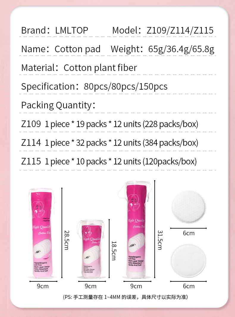 LMLTOP grueso algodón redondo 150 piezas de doble cara prensado punto de prensado húmedo desmaquillaje algodón redondo suministro internacional exclusivo