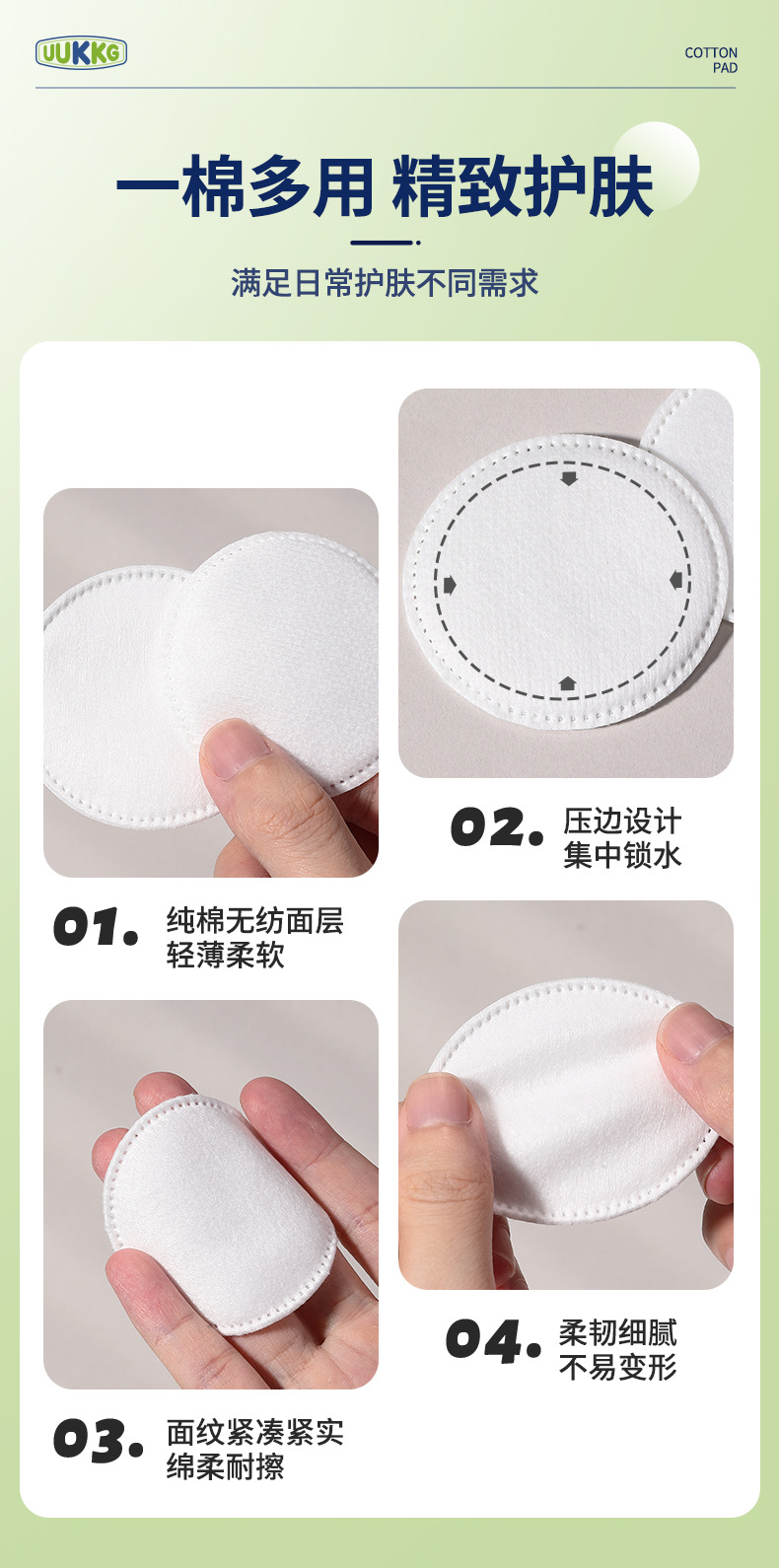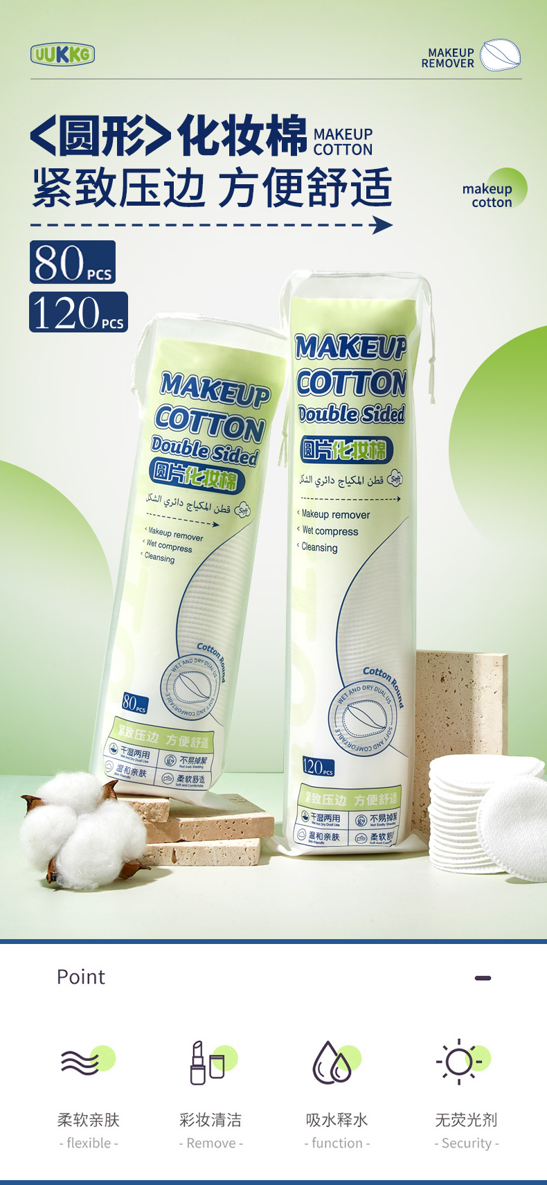 UUKKG algodón redondo sándwich 120 piezas de doble cara gruesa algodón limpiador de ojos y labios húmedo algodón redondo
