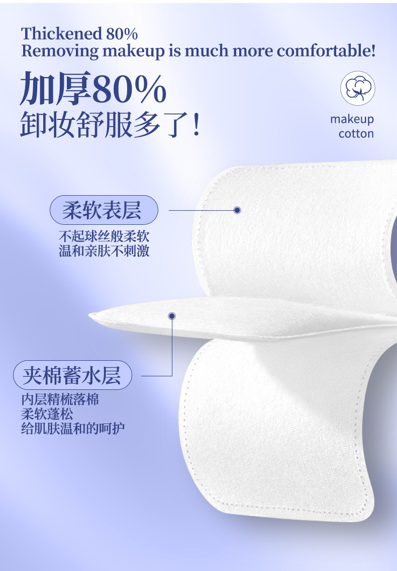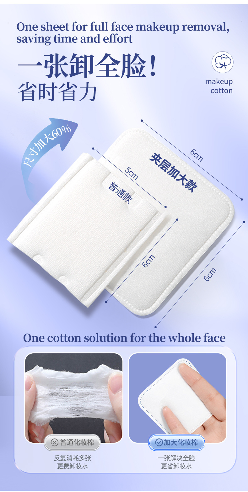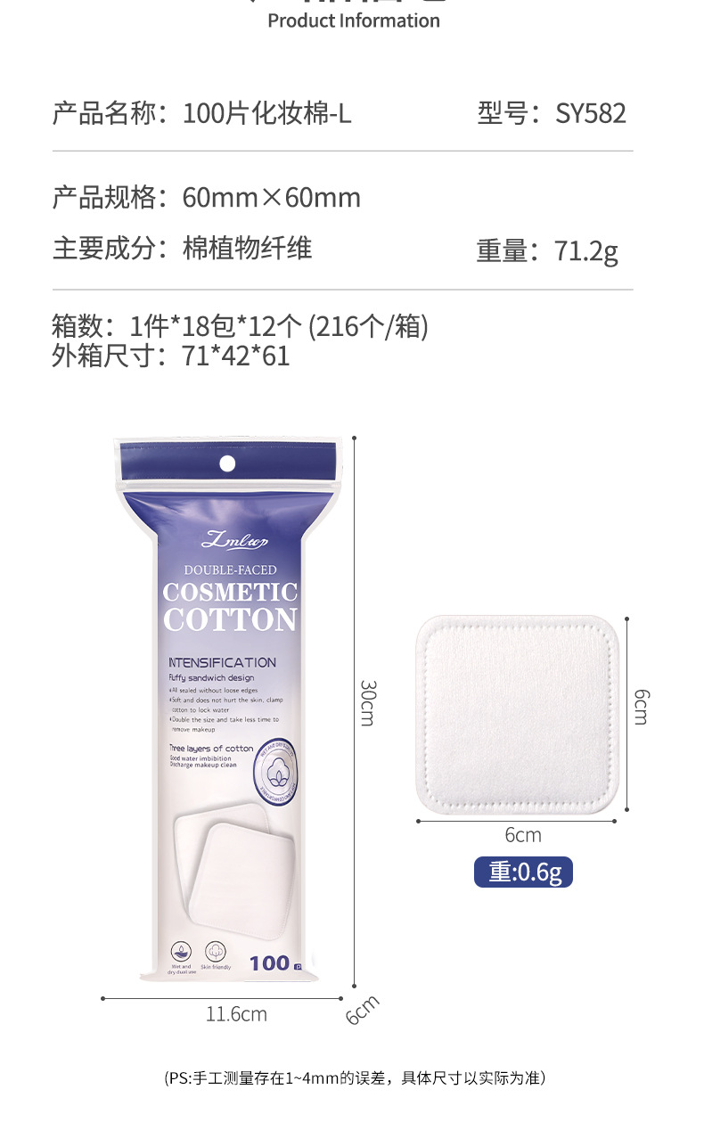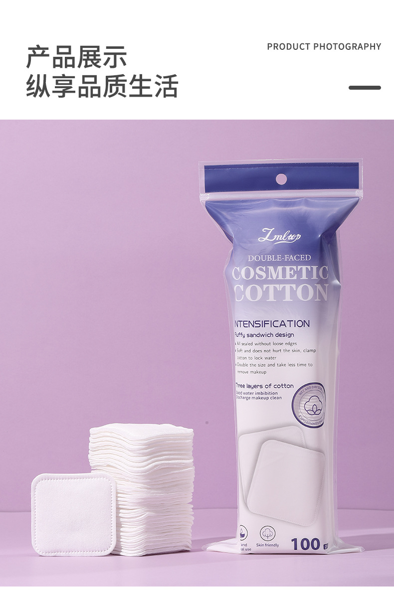 LMLTOP 6cm más amplio, 100 piezas de algodón de maquillaje plano cuadrado de doble cara, algodón húmedo de eliminación de maquillaje, suministro transfronterizo