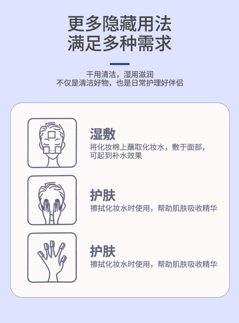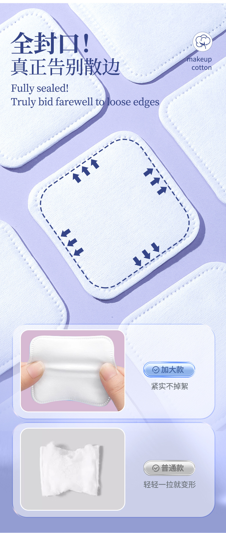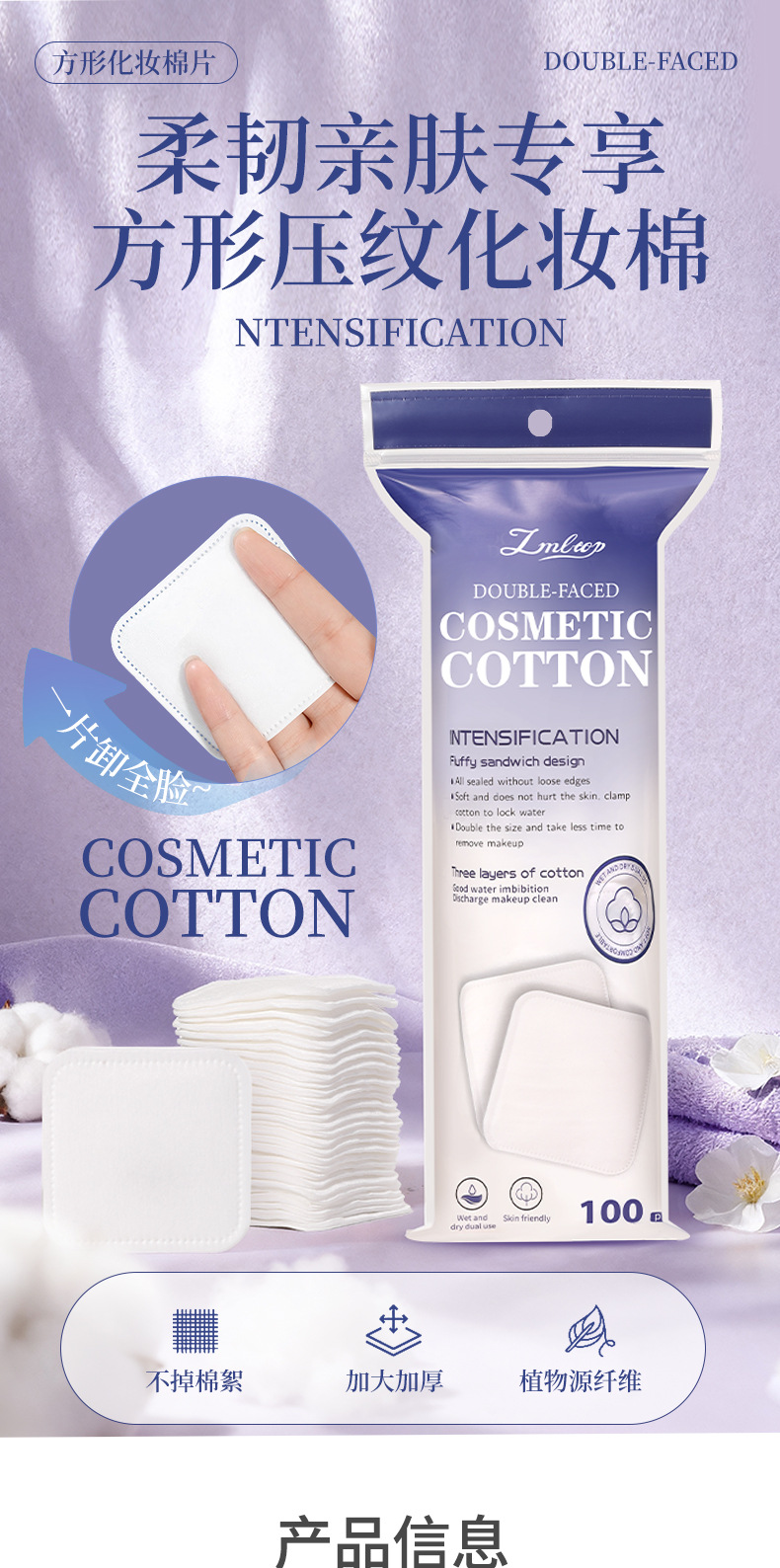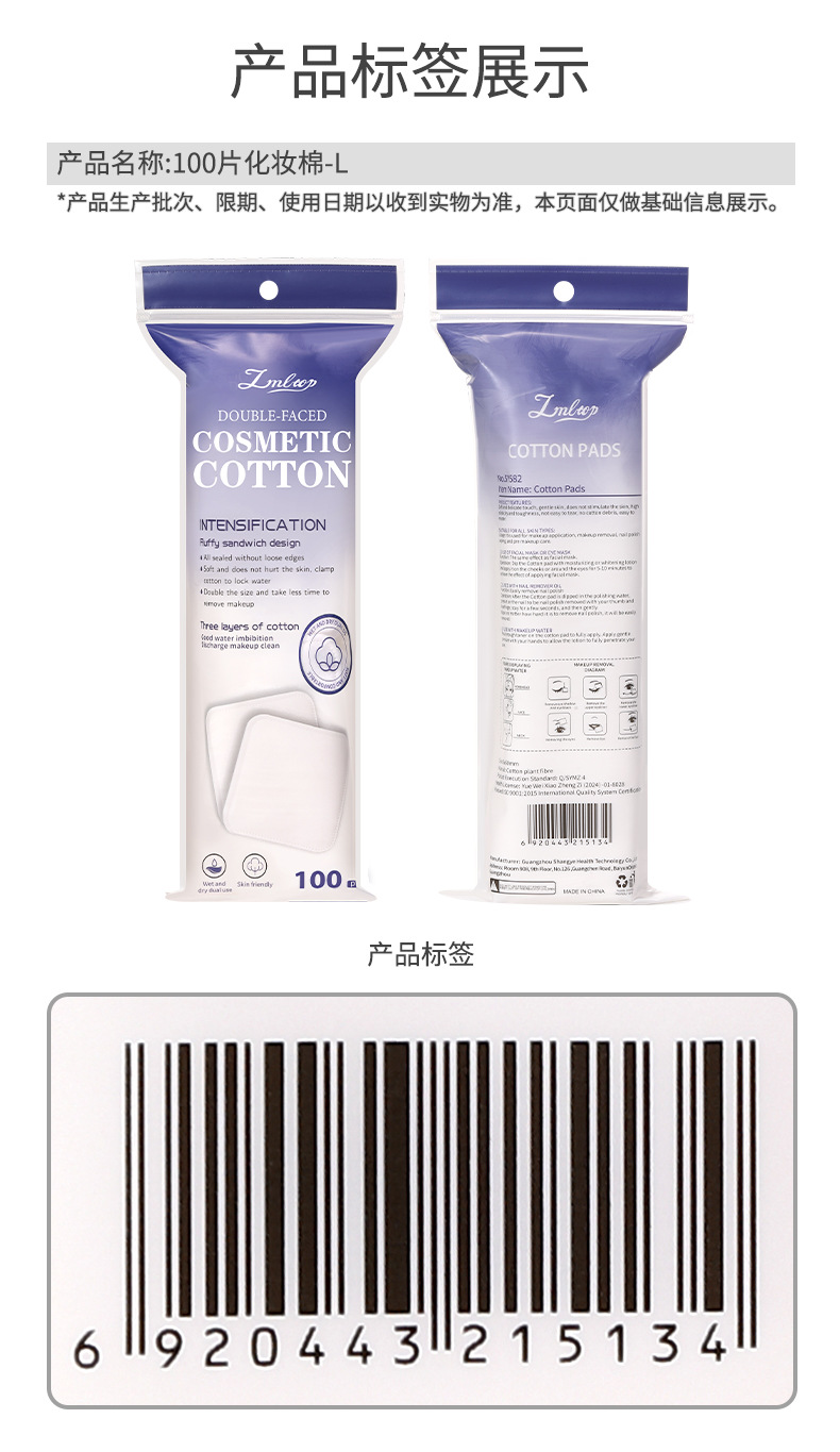 LMLTOP 6cm más amplio, 100 piezas de algodón de maquillaje plano cuadrado de doble cara, algodón húmedo de eliminación de maquillaje, suministro transfronterizo