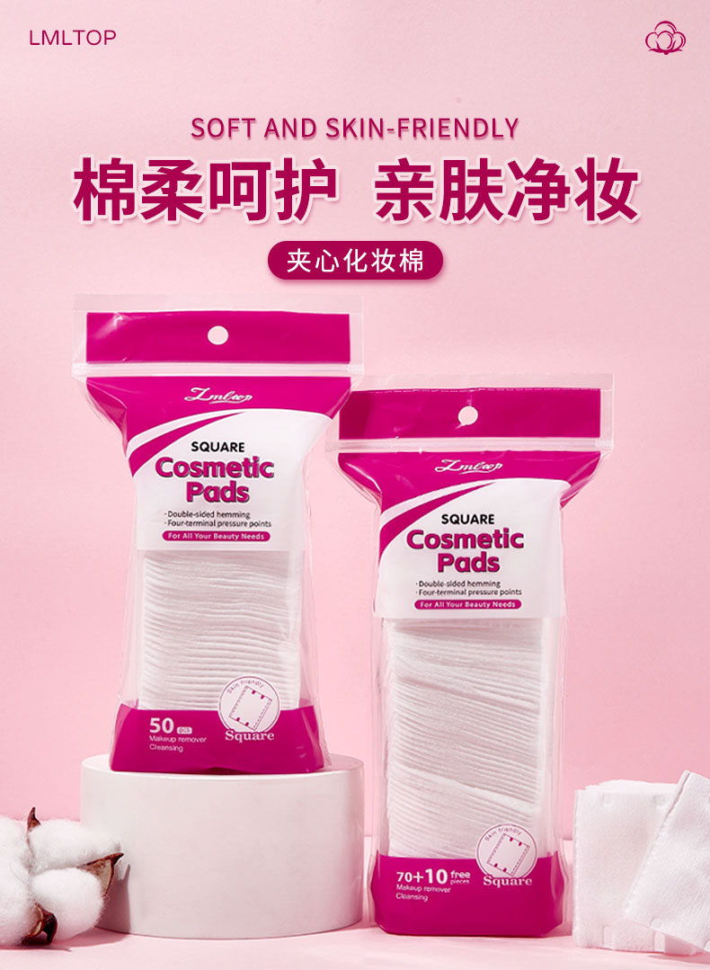 LMLTOP 50 piezas de algodón de maquillaje grueso, doble borde de prensado, algodón de limpieza húmeda para la cara, exclusivo a través de la frontera.