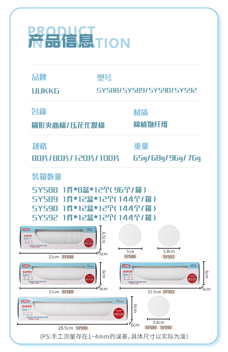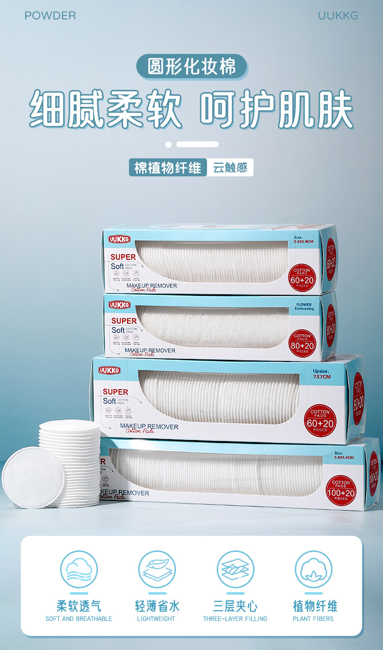 UUKKG aumenta el algodón de maquillaje de grasa redonda de algodón de limpieza de bordes, la serie de cajas de algodón redondo suministrada exclusivamente a través de fronteras
