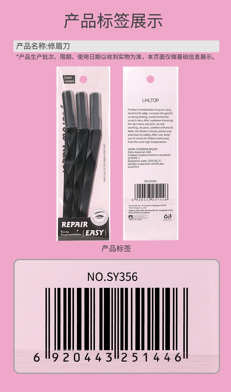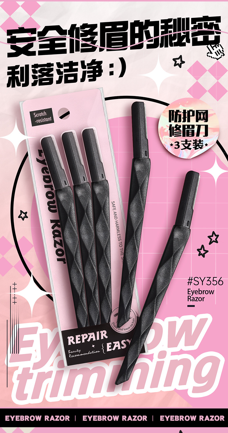 LMLTOP Macro cejas cuchillo de cejas 3 paquetes de acero inoxidable para principiantes cuchillo de cejas cuchillo de diamante negro solo para cross-border
