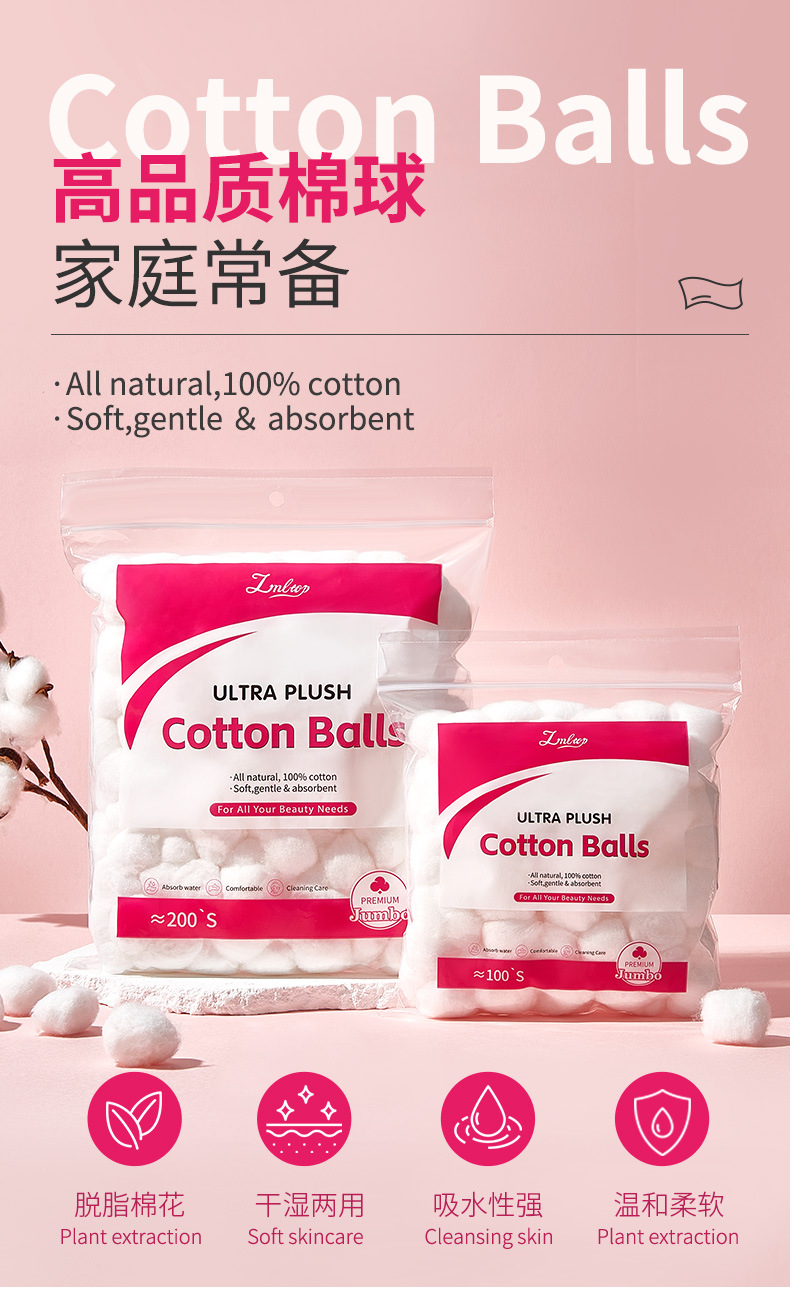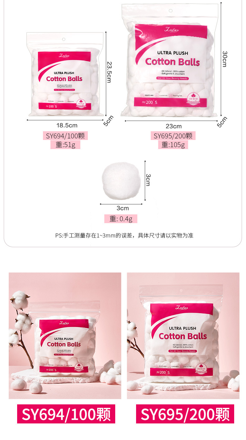 LMLTOP bola de algodón blanco desechable desengrasado, 200 bolas de algodón de cuidado de bordado de salón de belleza, suministro internacional exclusivo.