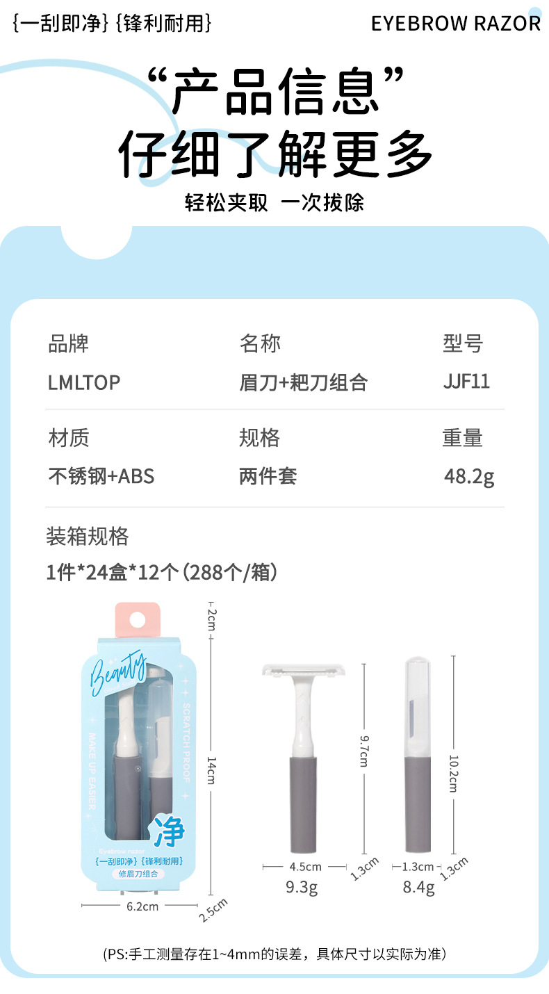 LMLTOP Cuchilla de cejas Juego de combinación de afeitadoras en forma de T Cuchilla de afeitar Herramienta de recorte de cejas JJF11