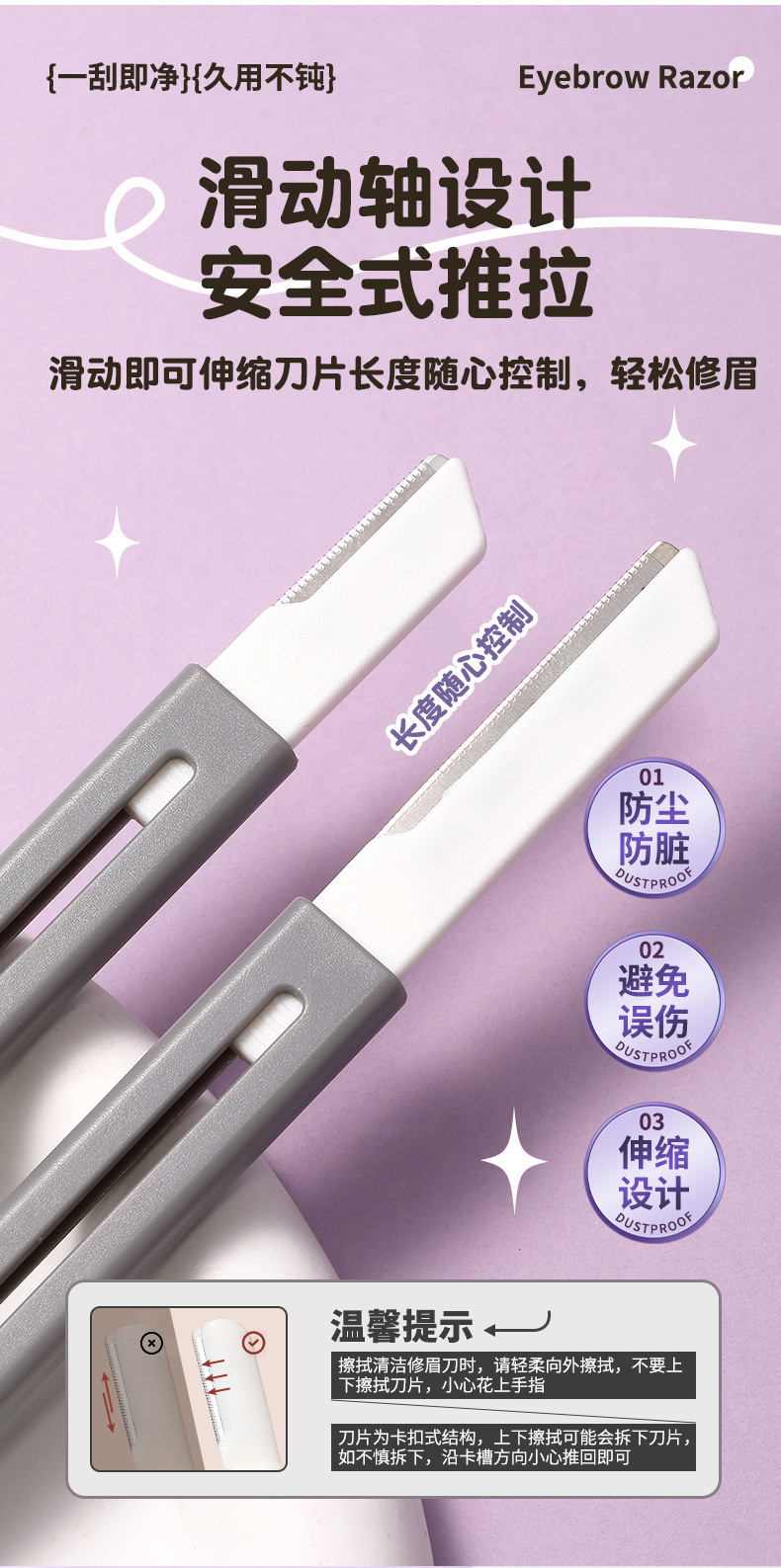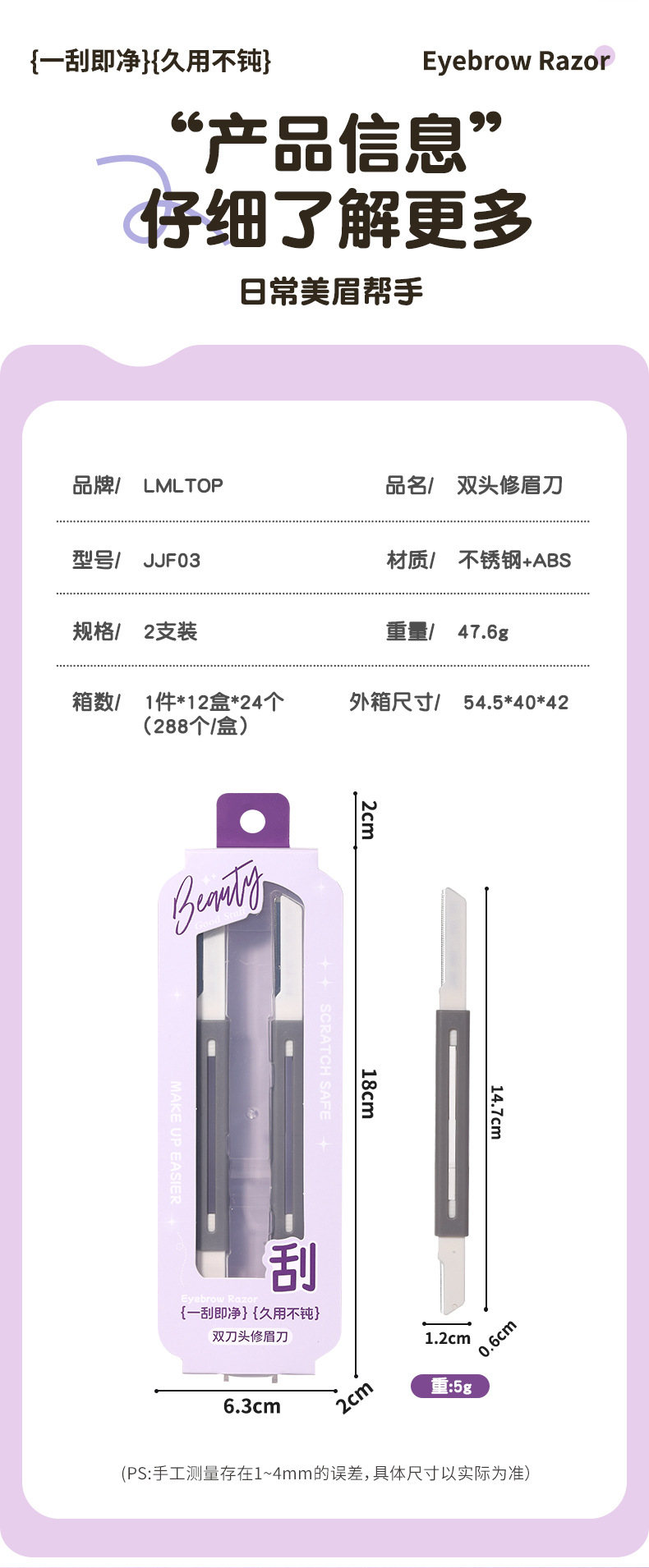 Cuchillo de cejas de doble corte LMLTOP 2 paquetes de afeitadora de cejas de malla macro portátil telescópica y retráctil JJF03