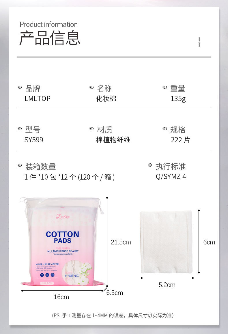 LMLTOP transfronterizo exclusivamente para almohadillas de algodón para sándwich, compresa húmeda gruesa de doble efecto de doble cara, almohadilla de algodón desmaquillante SY599