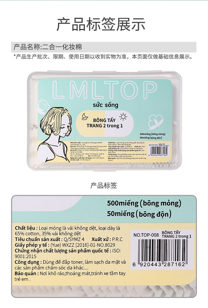LMLTOP transfronterizo exclusivamente para algodón cosmético dos en uno de grosor fino VN 550 piezas de algodón desmaquillante sándwich TOP-008