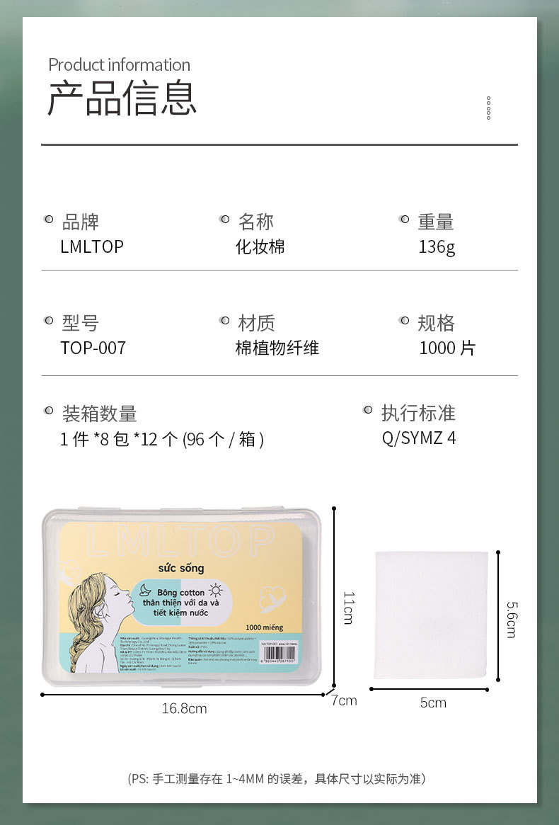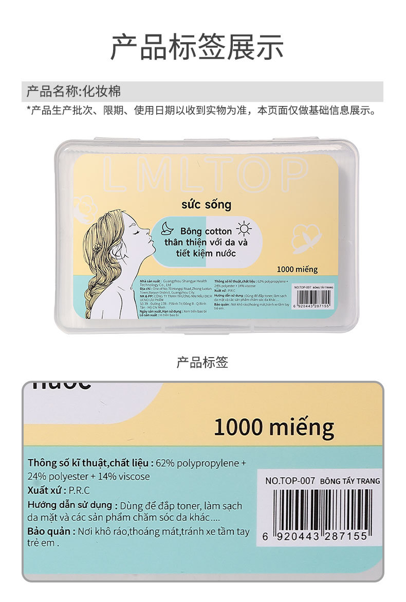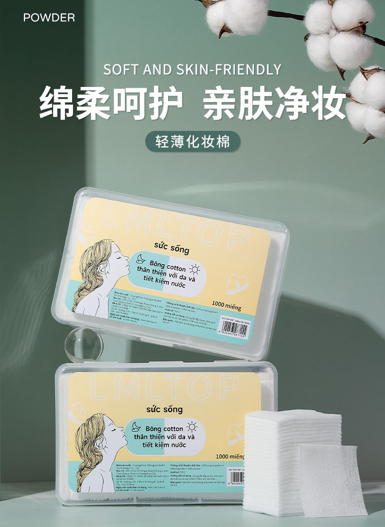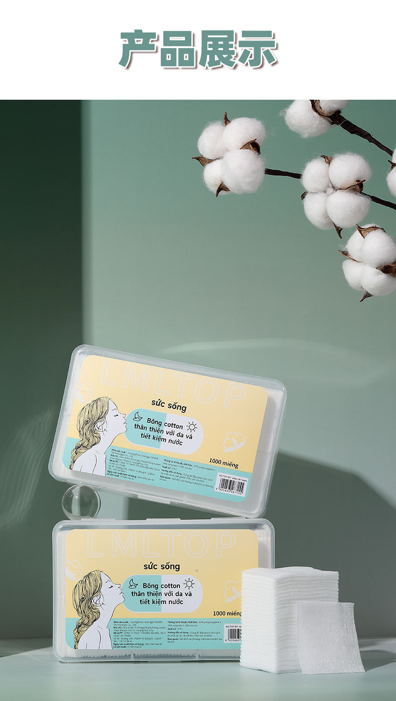 LMLTOP transfronterizo exclusivamente para VN delgado que ahorra agua compresa húmeda almohadilla de algodón desmaquillante no tejido hoja de algodón TOP-007