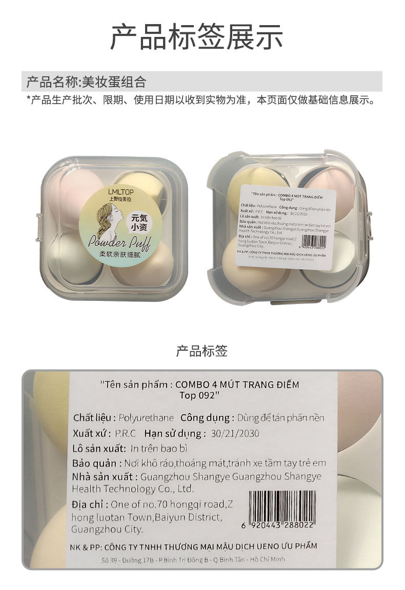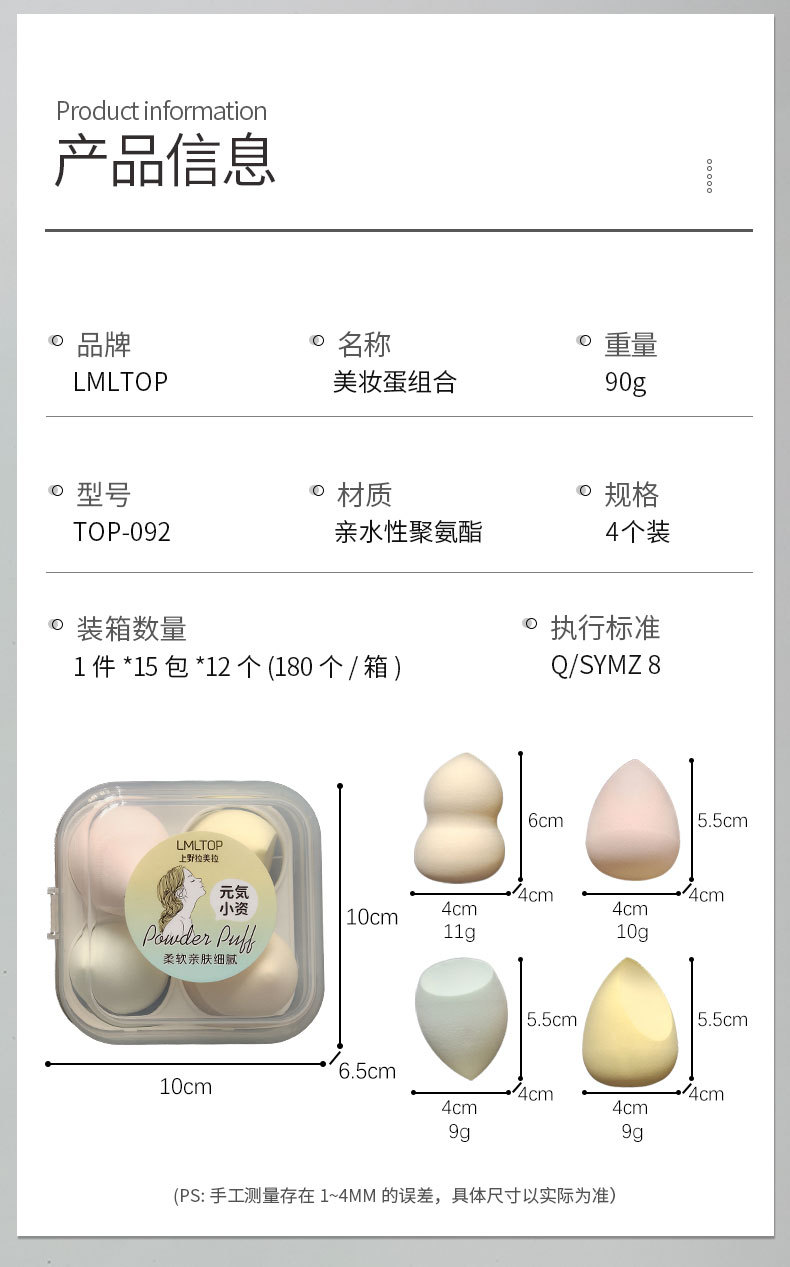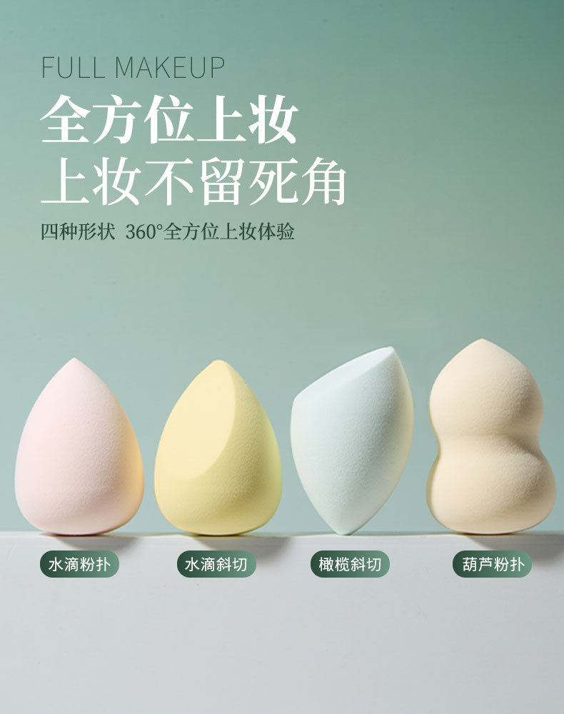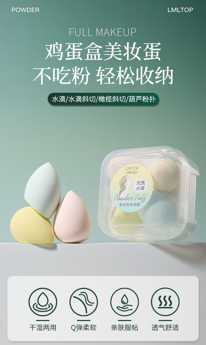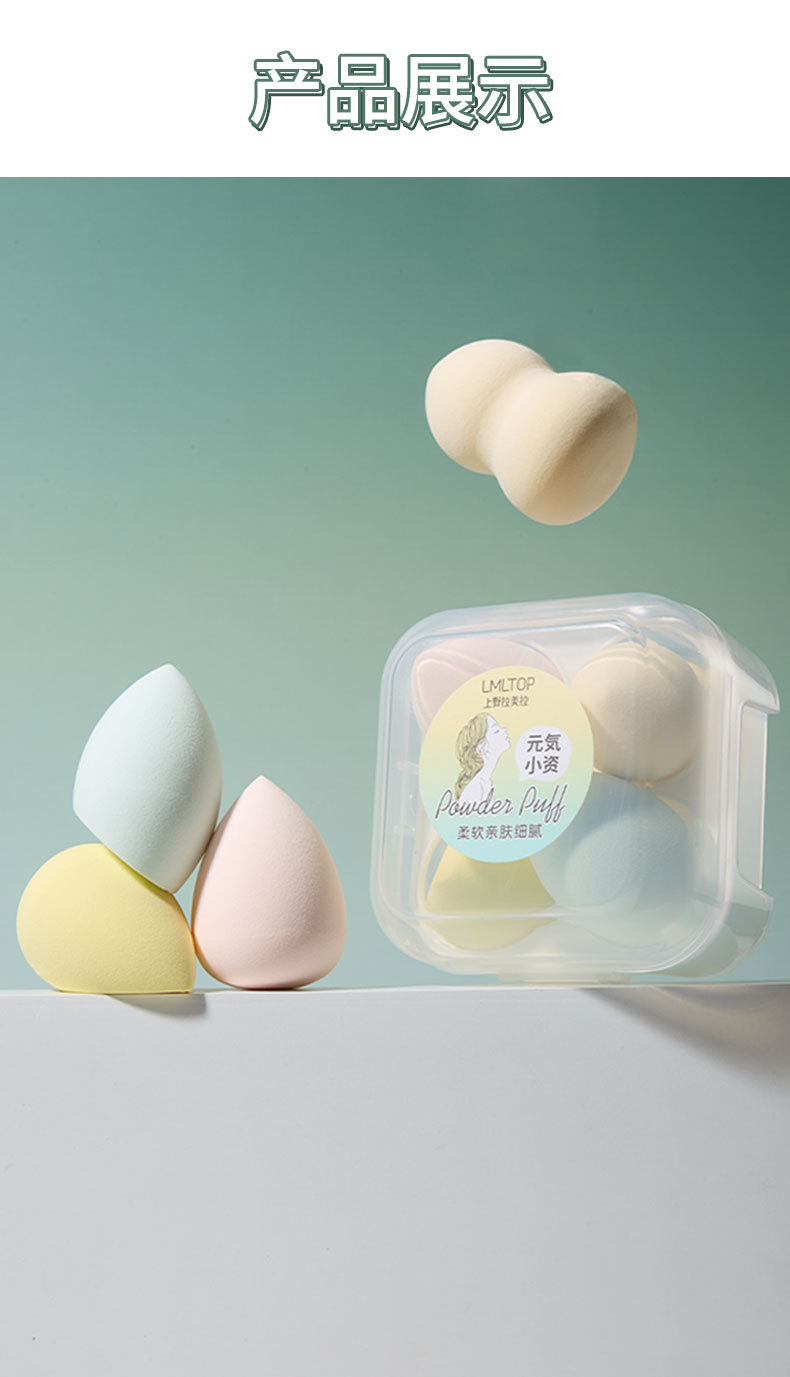 LMLTOP transfronterizo exclusivamente para huevos de belleza con cáscara de huevo VN juego de 4 piezas de calabaza corte oblicuo gotas de agua soplo de polvo TOP-092