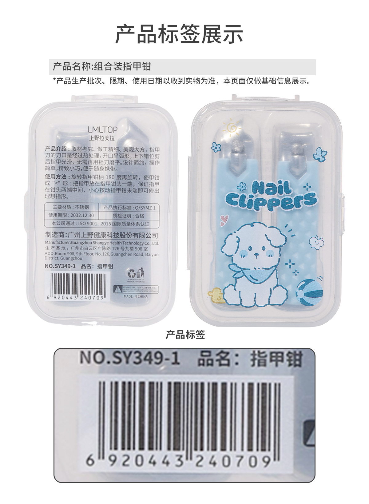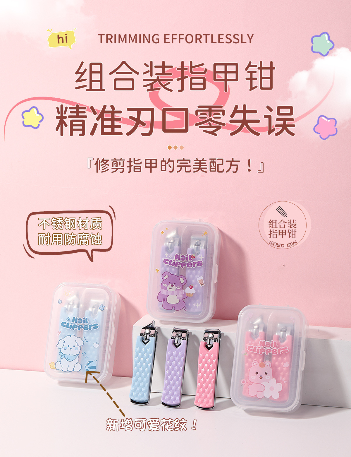 Juego de cortaúñas de acero inoxidable de dibujos animados LMLTOP cortaúñas portátiles de boca oblicua plana SY349