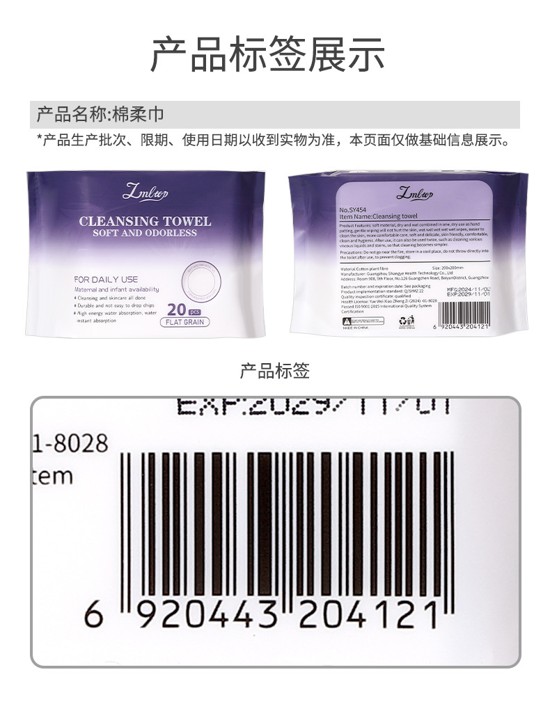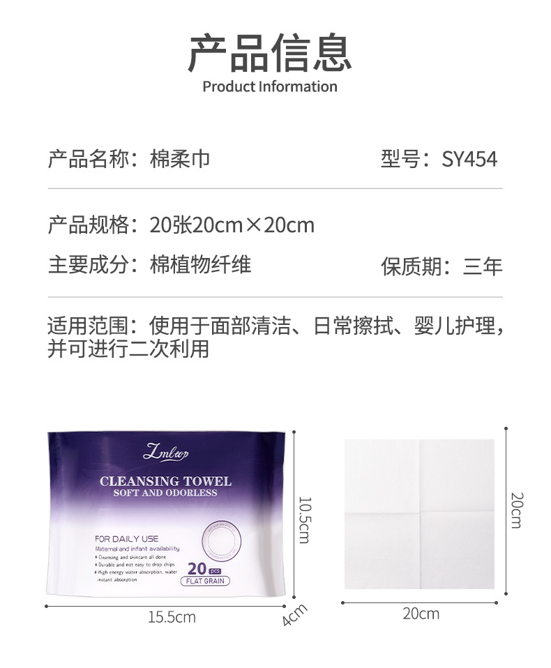 LMLTOP toallas de limpieza plana 20 piezas toallas de limpieza facial desechables, toallas de algodón portátiles transfronterizas exclusivas SY454