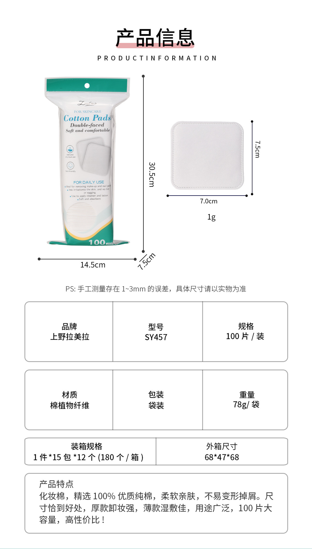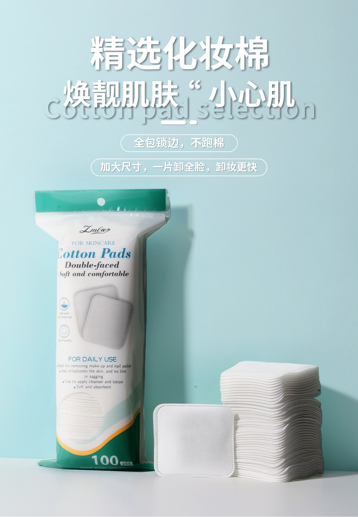 LMLTOP, algodón cosmético cuadrado de doble cara plano húmedo, algodón desmaquillador de maquillaje transfronterizo, exclusivo SY457