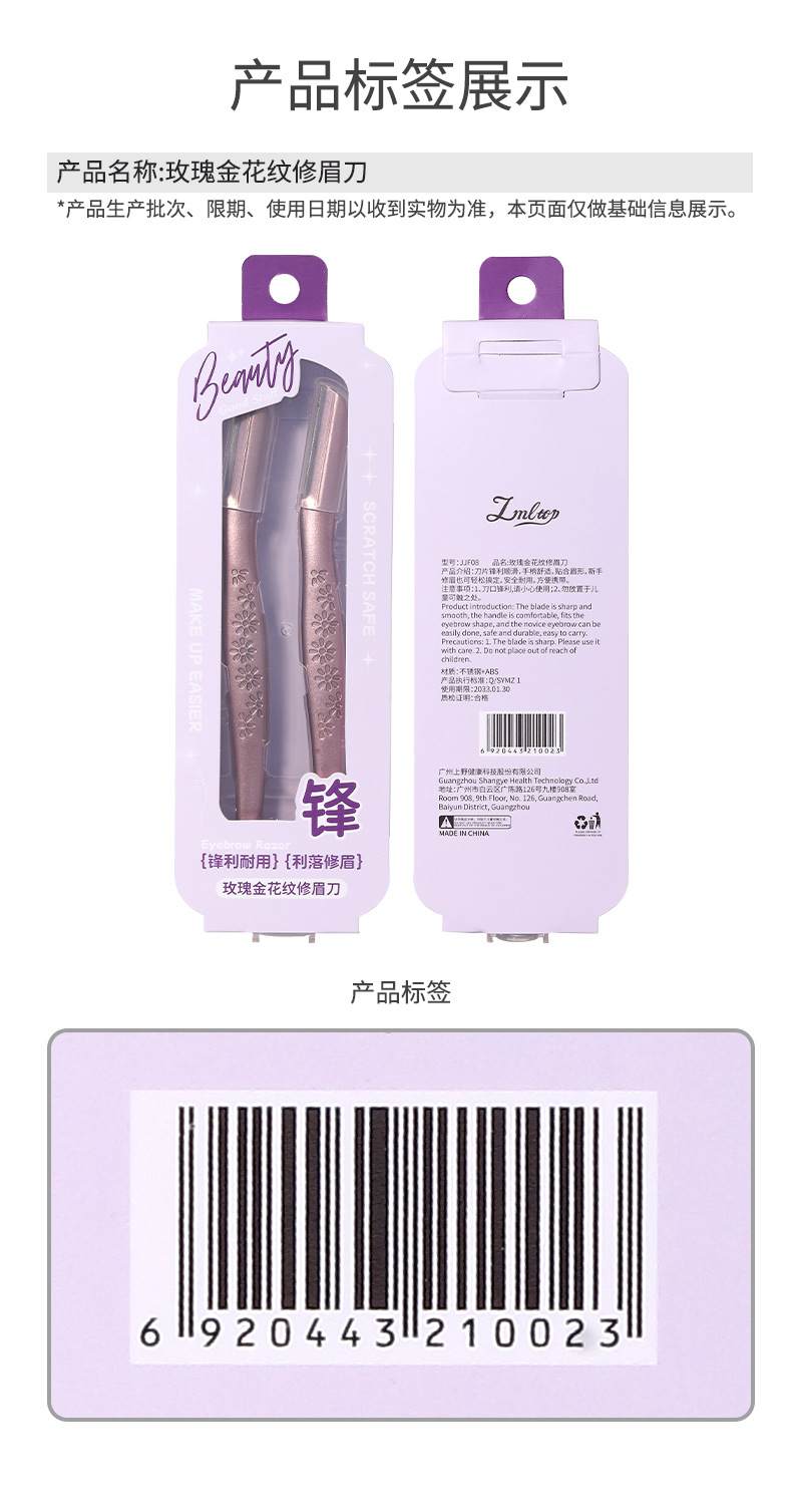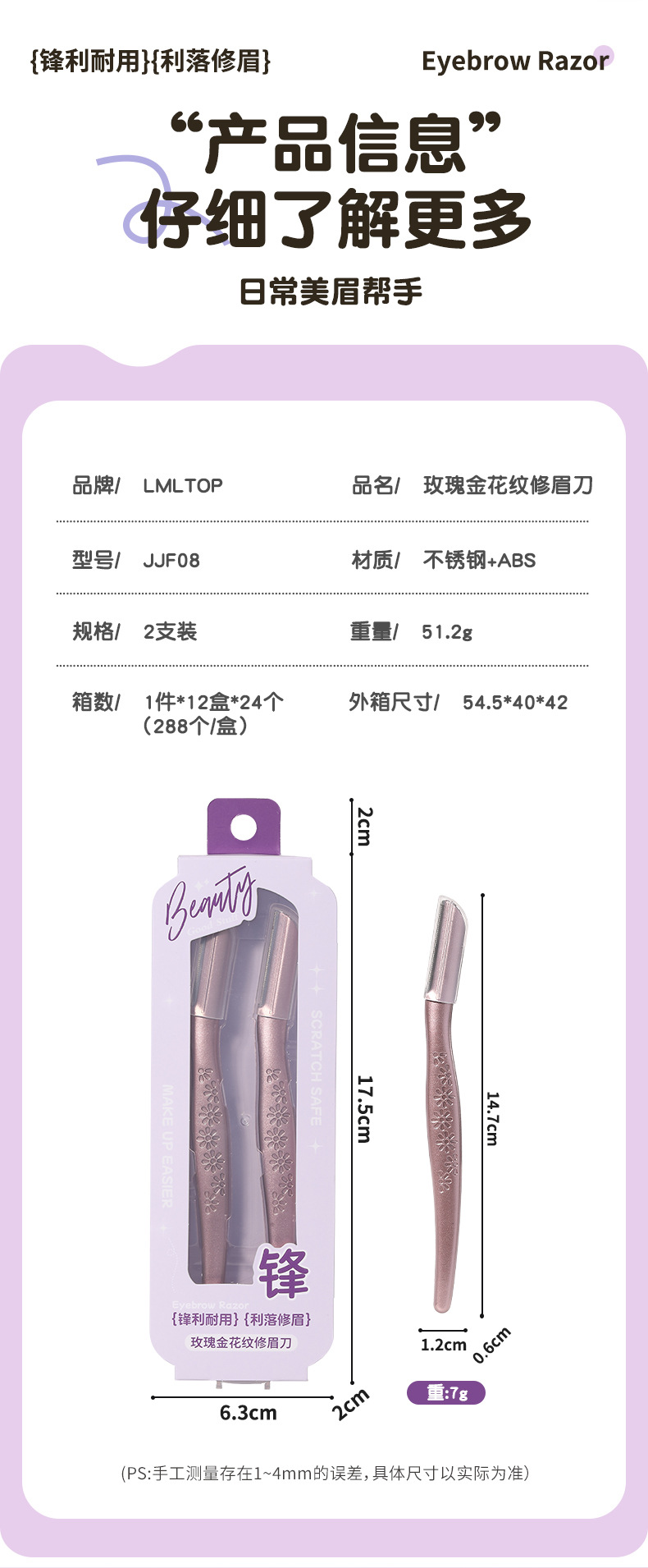 LMLTOP oro rosa cortador de cejas dos paquetes de acero inoxidable macrométrico cortador de cejas JJF08