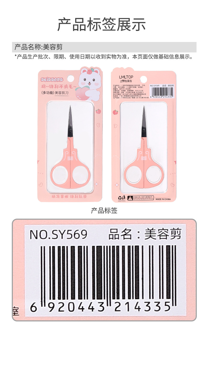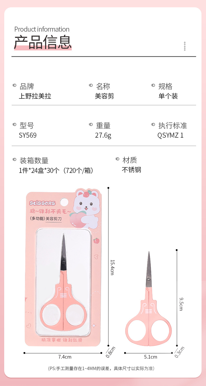 LMLTOP dibujos animados de acero inoxidable tijeras de belleza multifuncional pequeñas tijeras afiladas tijeras de cejas portátiles SY569